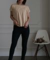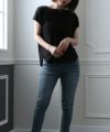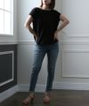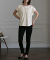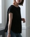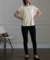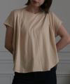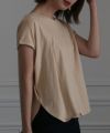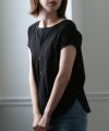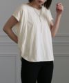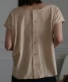 フレンチスリーブの可愛いシンプルなディティールの一枚。ボタン面を前にして羽織る形にも、Vネック面を前にも着られる2WAYカットソーです。