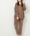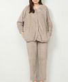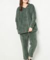 ふわふわ生地が可愛いルームウエア シープボア前釦アウターパンツ上下セット