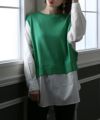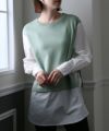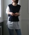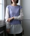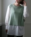 ■コットンシャツ×ニットベストのドッキングプルオーバー