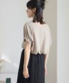 ■肩の落ち感が綺麗なイメージのカットソースリーブ部分にゴムの入ったゴムギャザーデザイン。Vネックとクルーネックの前後2WAYで着ていただけます。カジュアル~キレイめまでは幅広く合わせやすいアイテムです。
