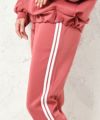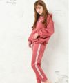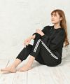 ゆったりしたシルエットなのでお部屋でくつろぐのにぴったりのセットアップ。着回しもしやすいパーカーとラインパンツは絶妙に女子らしいシルエット♪
