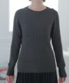 柔らかく優しい印象を与えるクルーネックデザイン。コーデの仕方によって、カジュアルにも大人っぽくも見せる1着です。