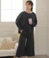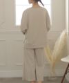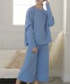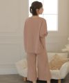 ゆったりしたシルエットなのでお部屋でくつろぐのにぴったりのセットアップ。ガウチョパンツなので窮屈なく着ていただけます♪