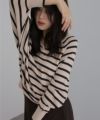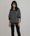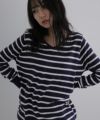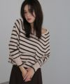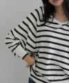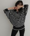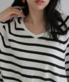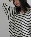 ゆるっとこなれ感、美人見えシルエット Vネックボーダードルマンニット