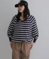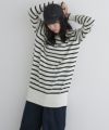 Vネックボーダーニット