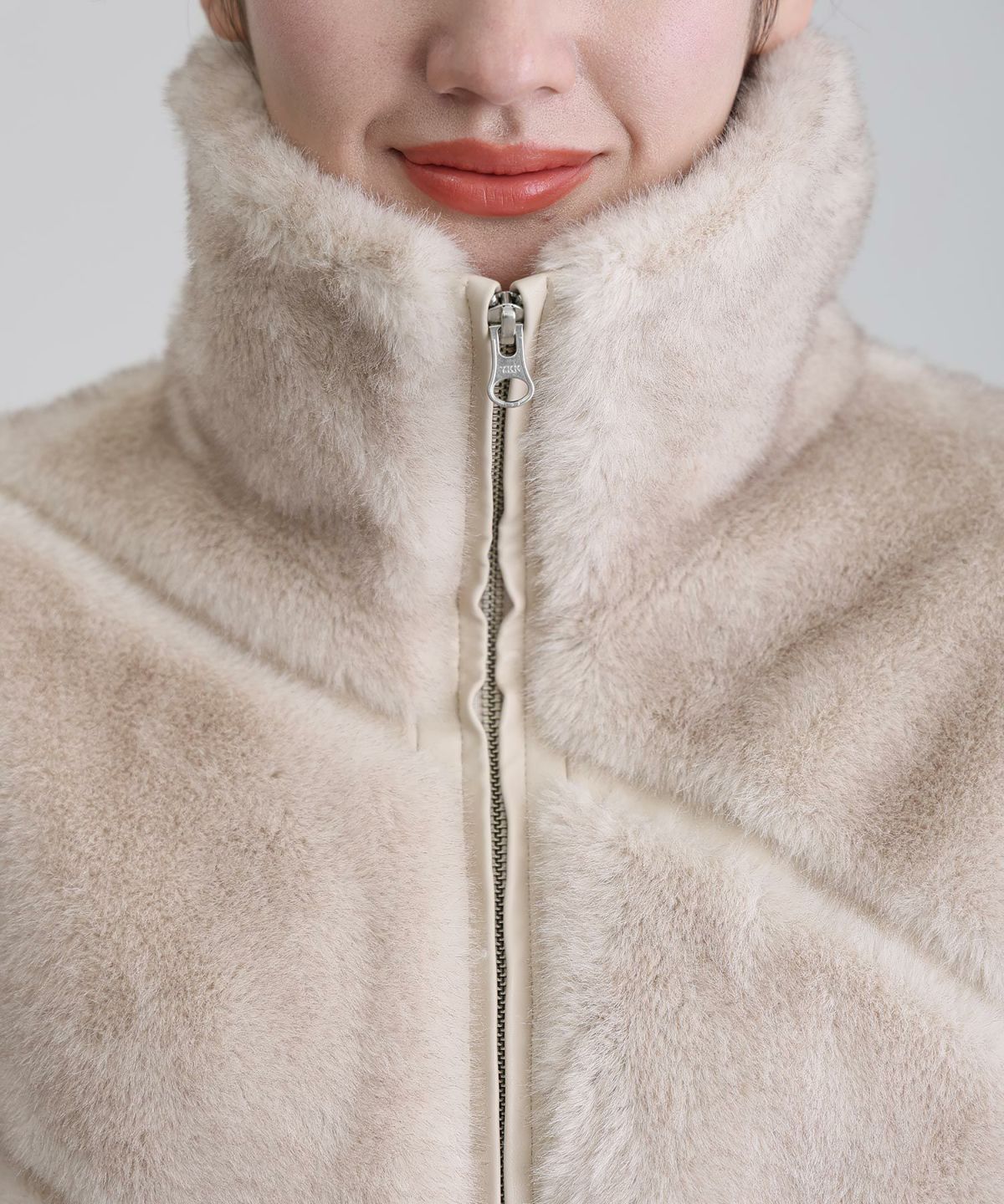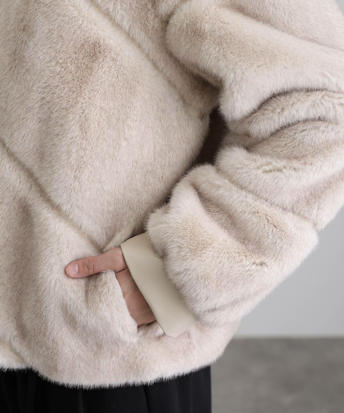 高級感のあるミンク風のフェイクファーを使用したジャケット。