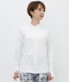 指穴ありの長い袖丈なので、手の甲までしっかりとカバーできるのが嬉しいポイント!フード付きでアウトドアシーンでも活躍してくれます。喉元までしっかりとファスナーが閉まるので、デコルテもしっかりケア。