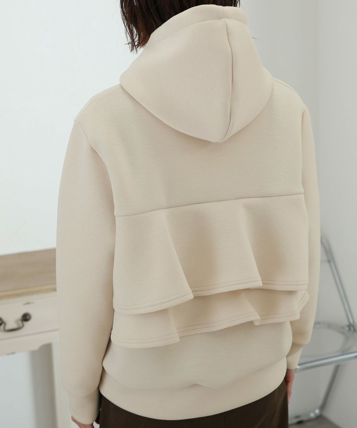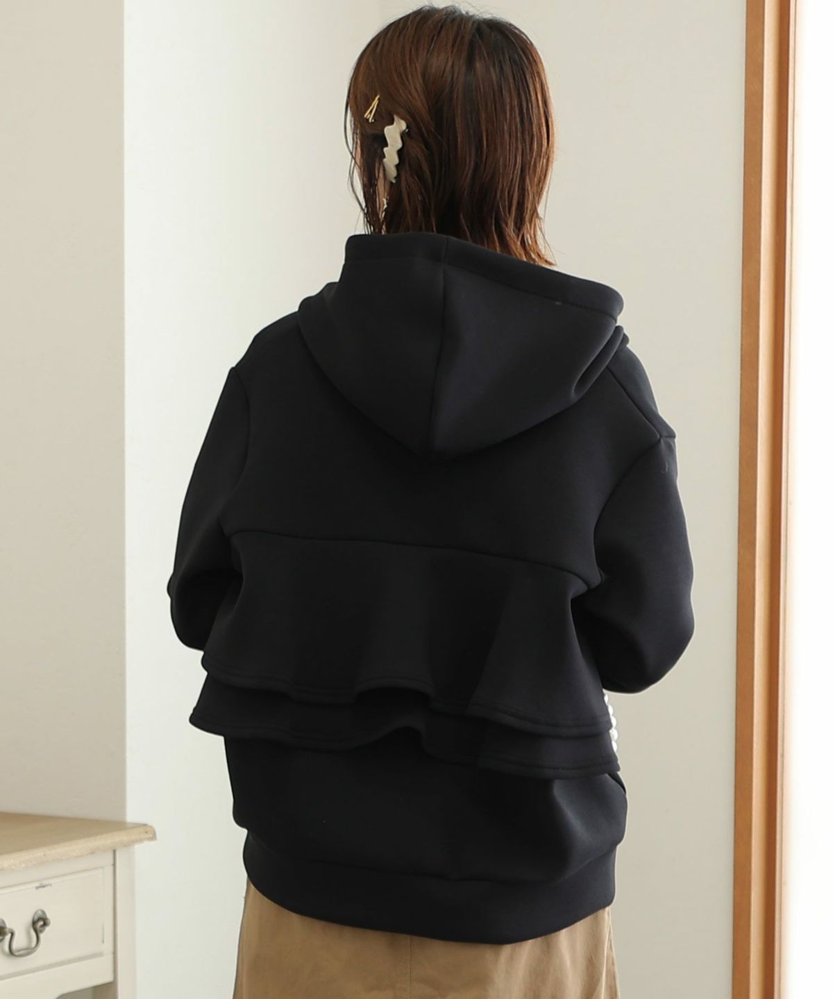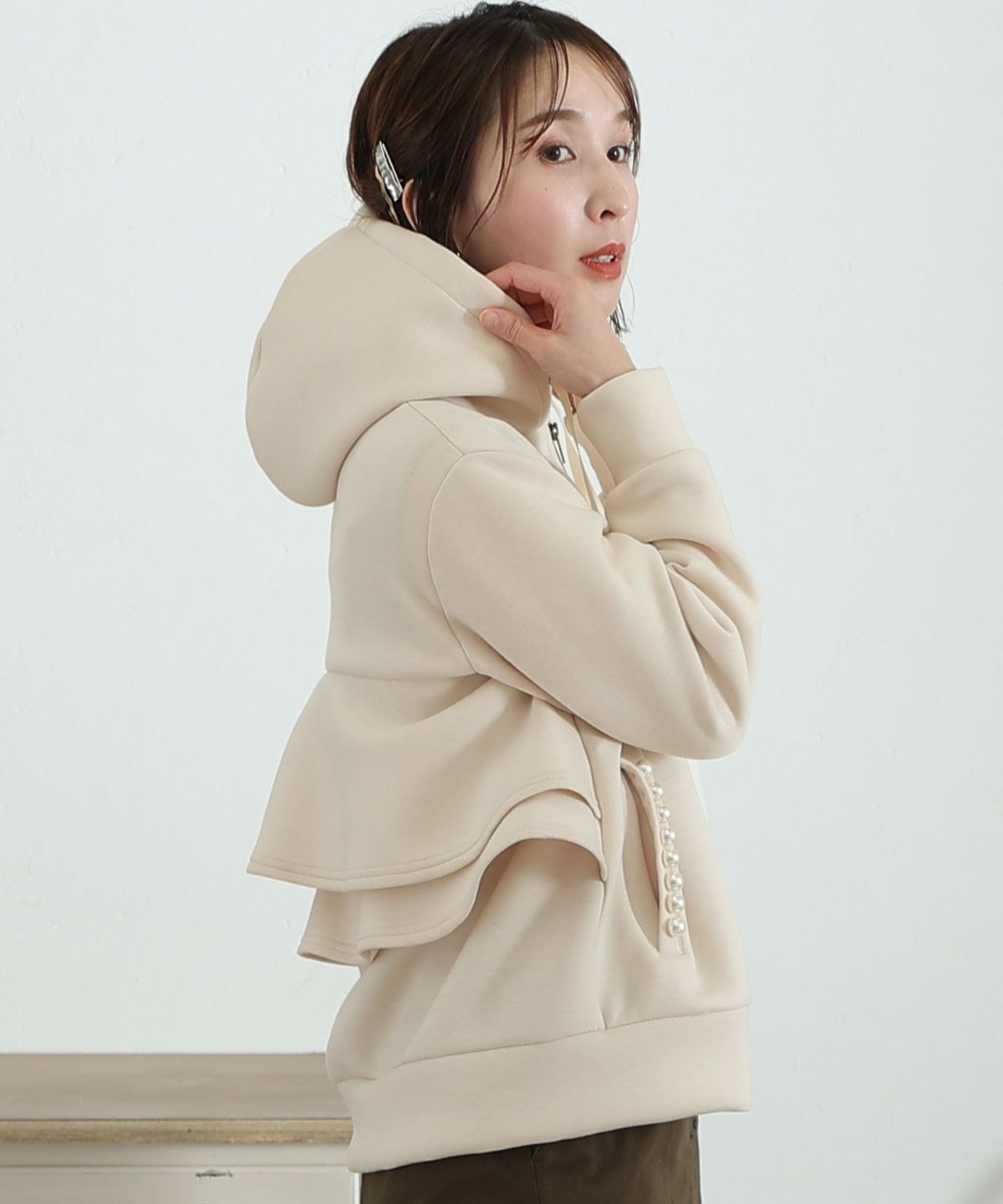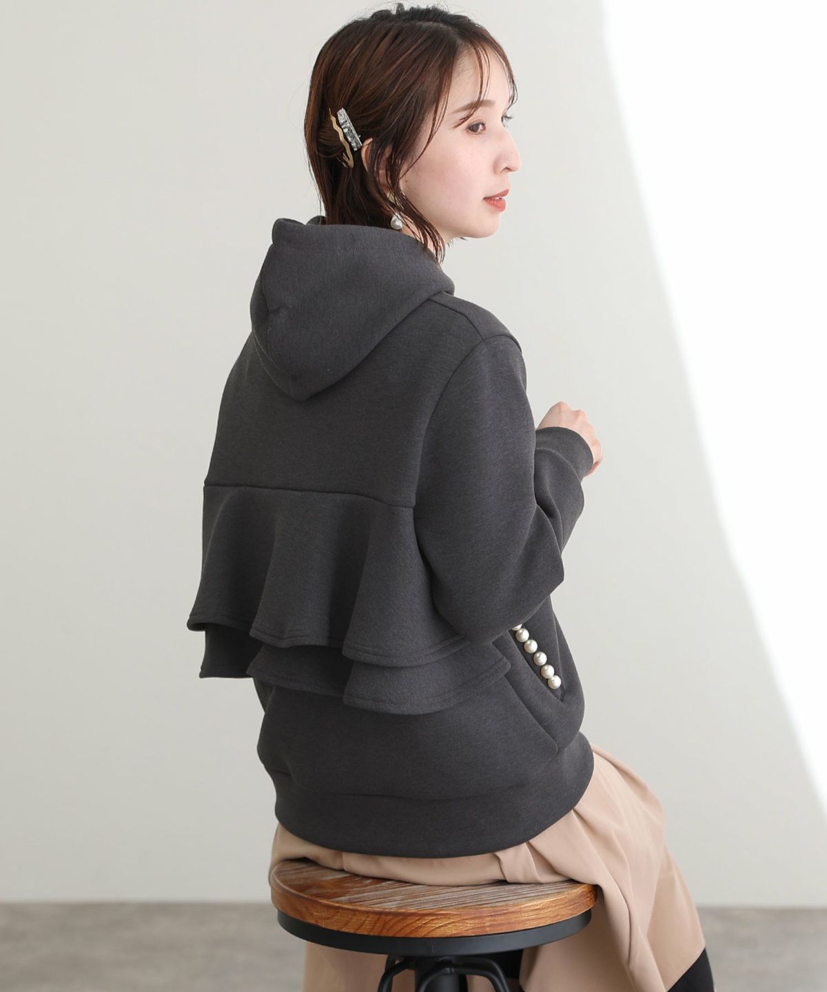 パール付きバックフリルパーカー
