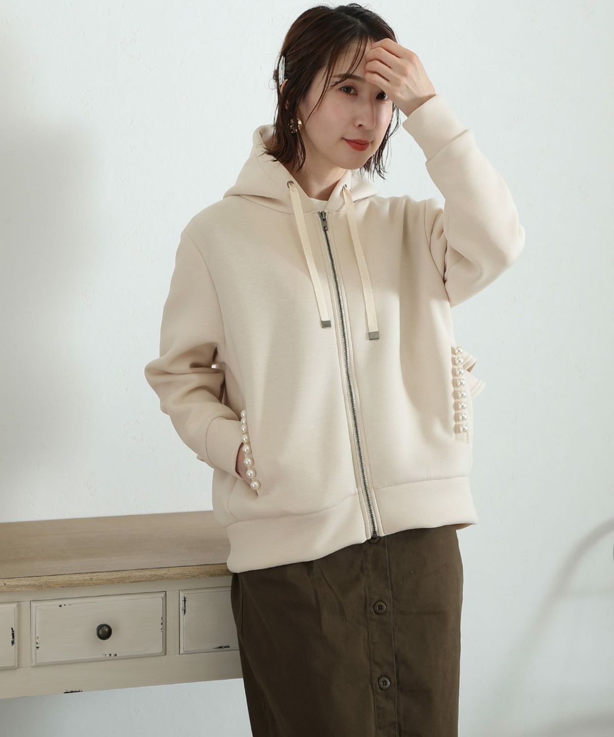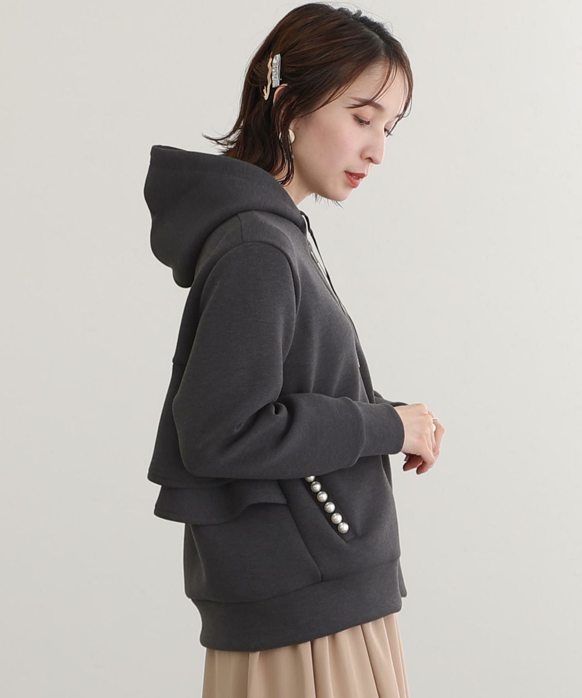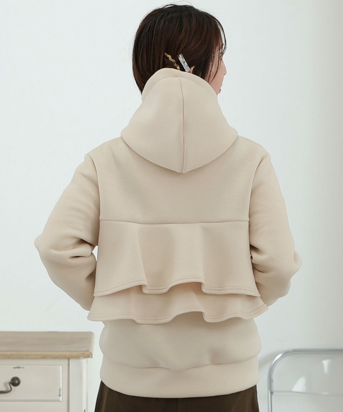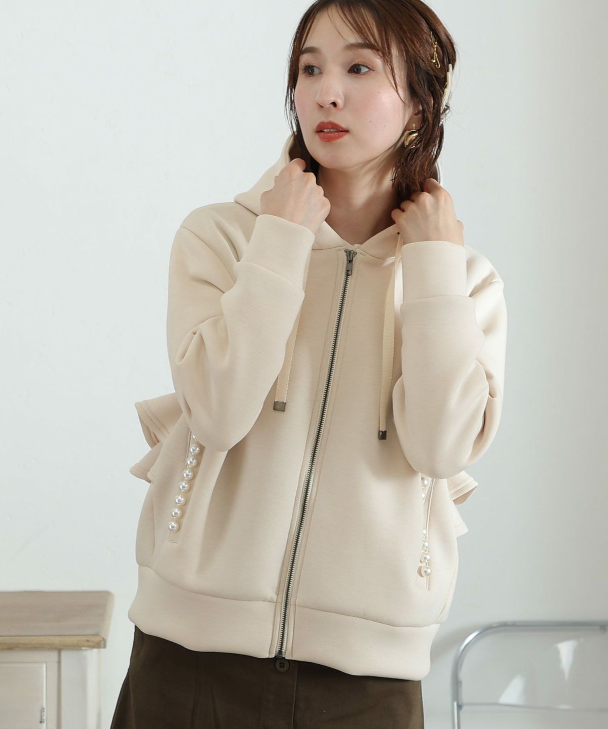 パール付きバックフリルパーカー