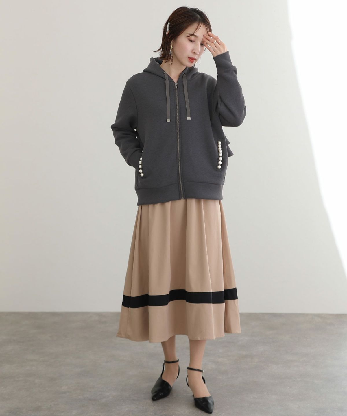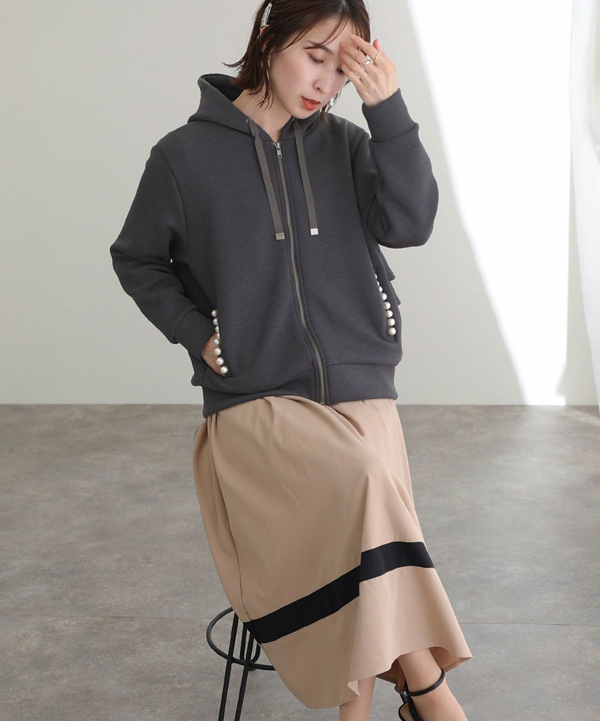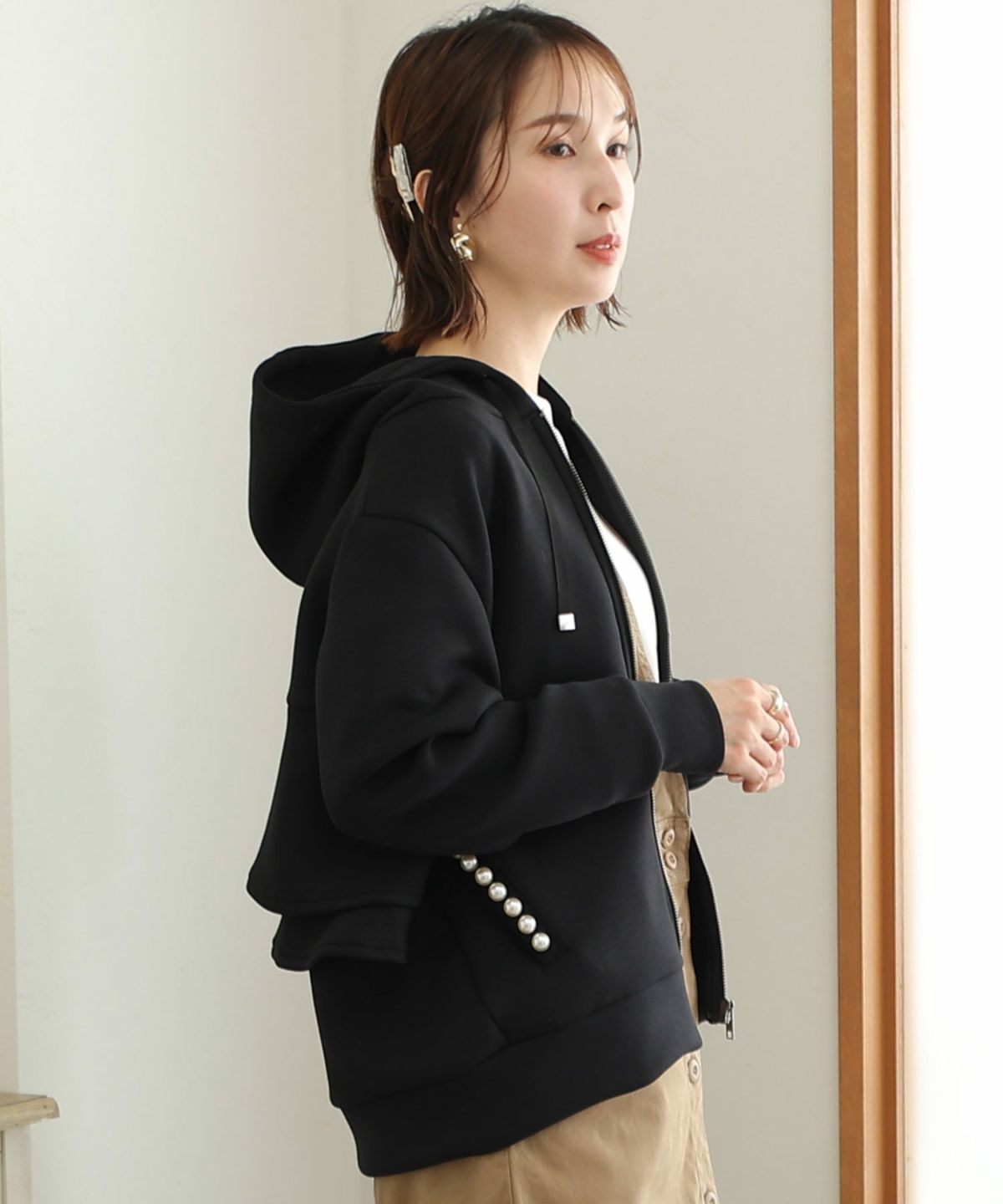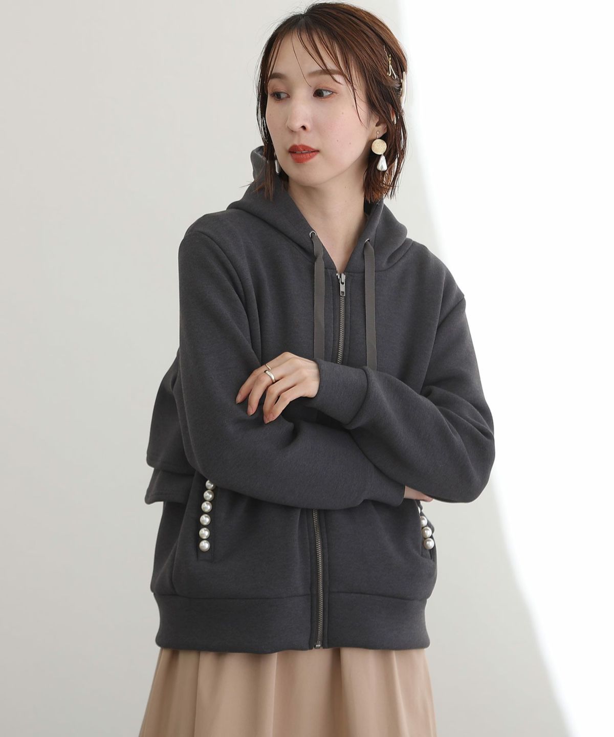 パール付きバックフリルパーカー