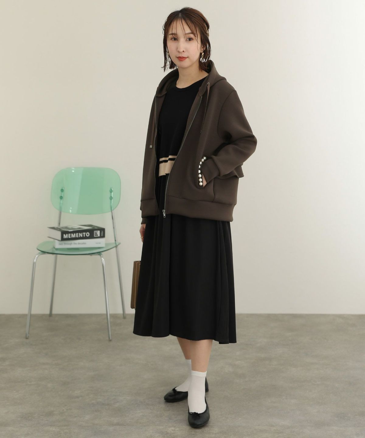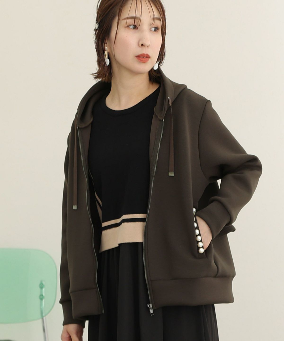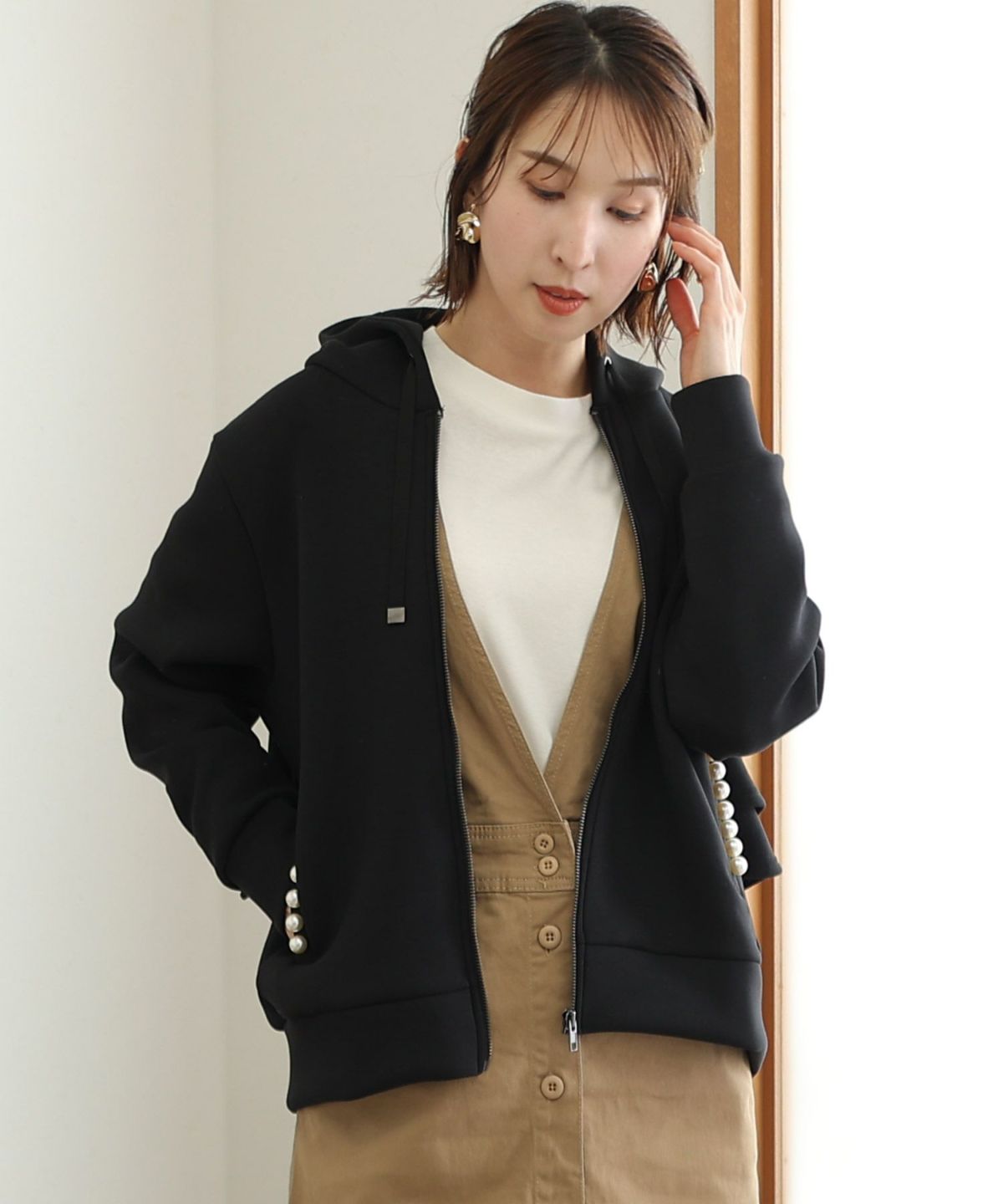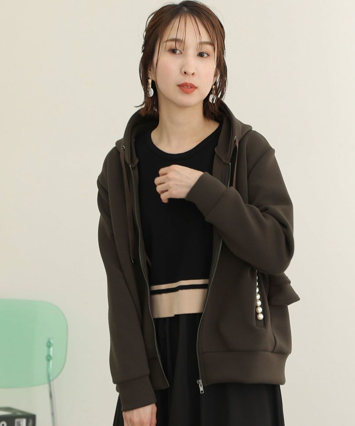 パール付きバックフリルパーカー