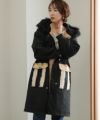配色がかわいいファーコート 取外しフェイクファー付配色中綿コート