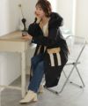 ■配色がかわいいファーコートファー&ボアデザインで首元まであたたかい。差し色がコーデにこなれ感を演出してくれます。フードについたフェイクファーは取り外しが可能です。