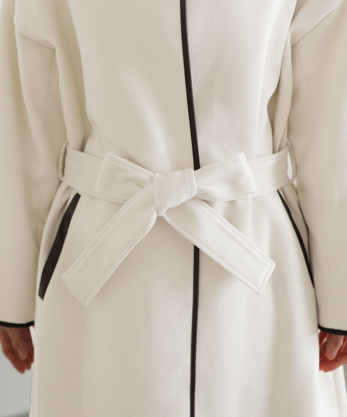 パイピングデザインがコーデのアクセントに 配色パイピングラップコート