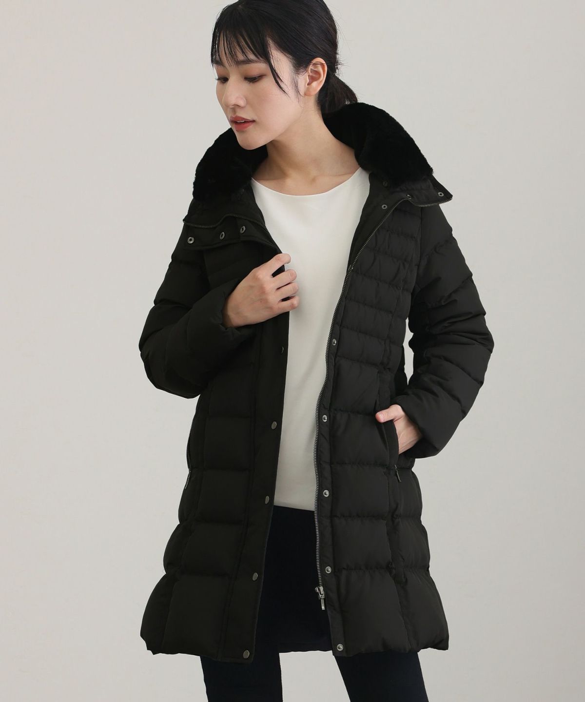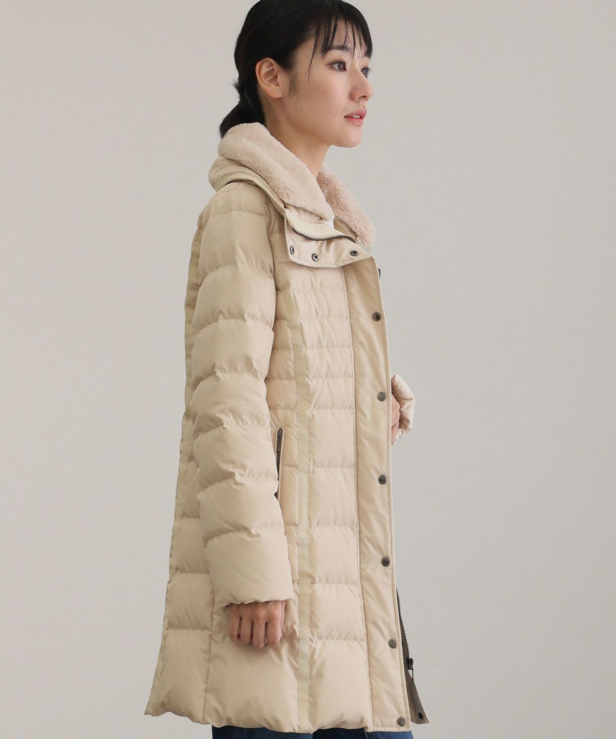 首元まで暖かい ポリ&フェイクファーダウンコート