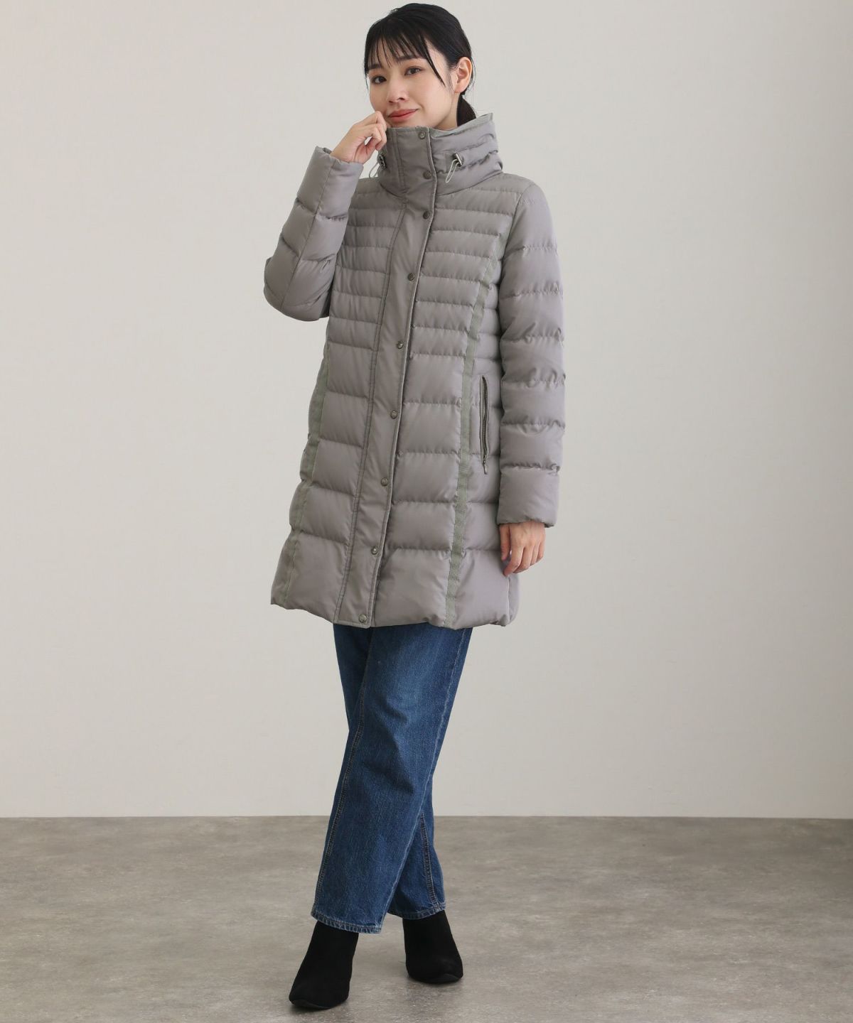 ■首元まで暖かい上品なダウンコート体のラインを拾わないデザインで、ゆったり楽に着用できるのが魅力。シンプルなデザインなので、様々なコーデにも合わせやすく年齢も問わないので、長く使って頂きやすいアイテムとなっています。