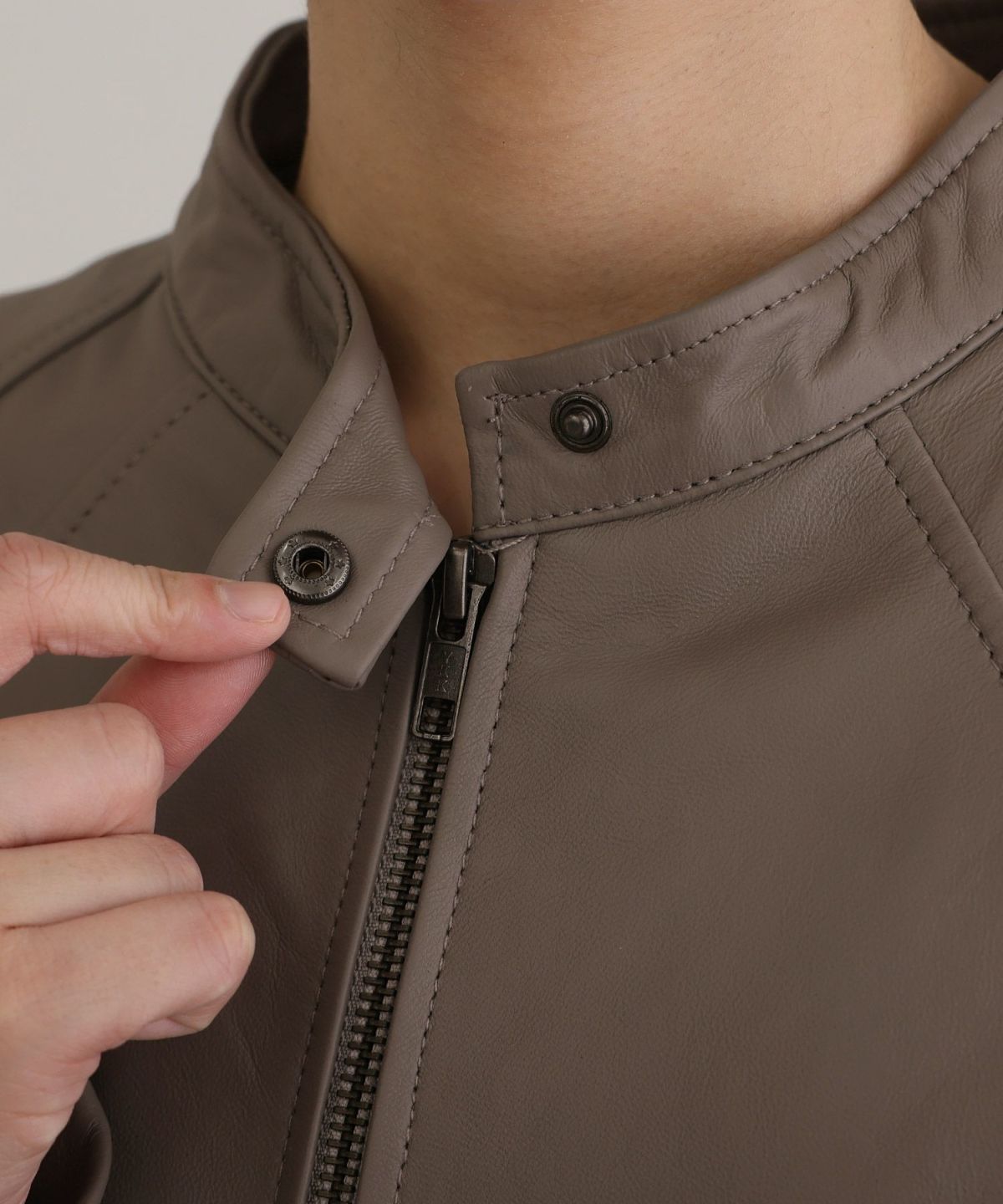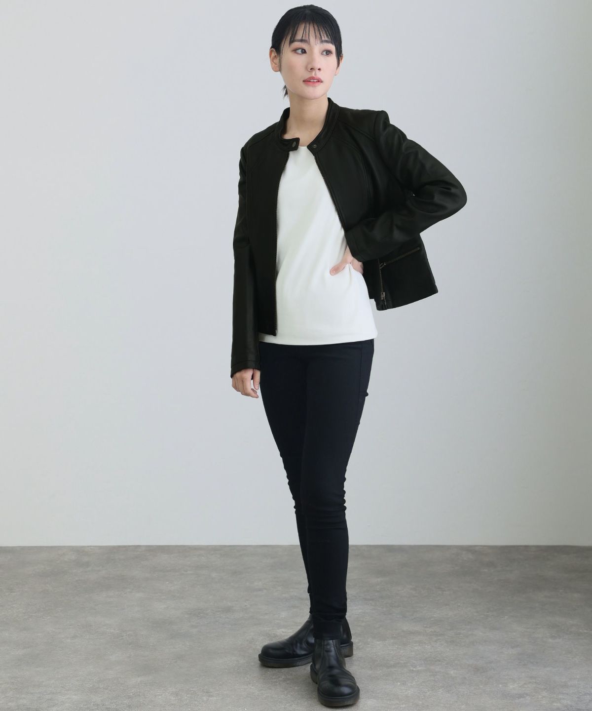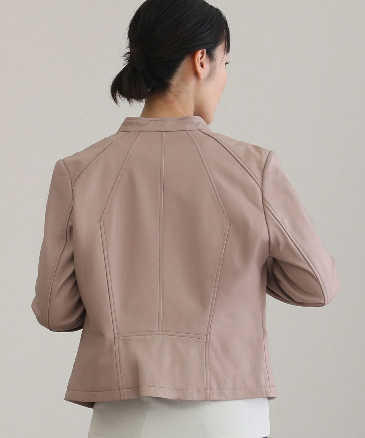 ■上質なラム革を使用したノーカラージャケットカジュアルさの中に上品さをプラスしてくれるアウター。シンプルなデザインなのでいろいろなコーデに合わせられ、自分好みのファッションを楽しめます。