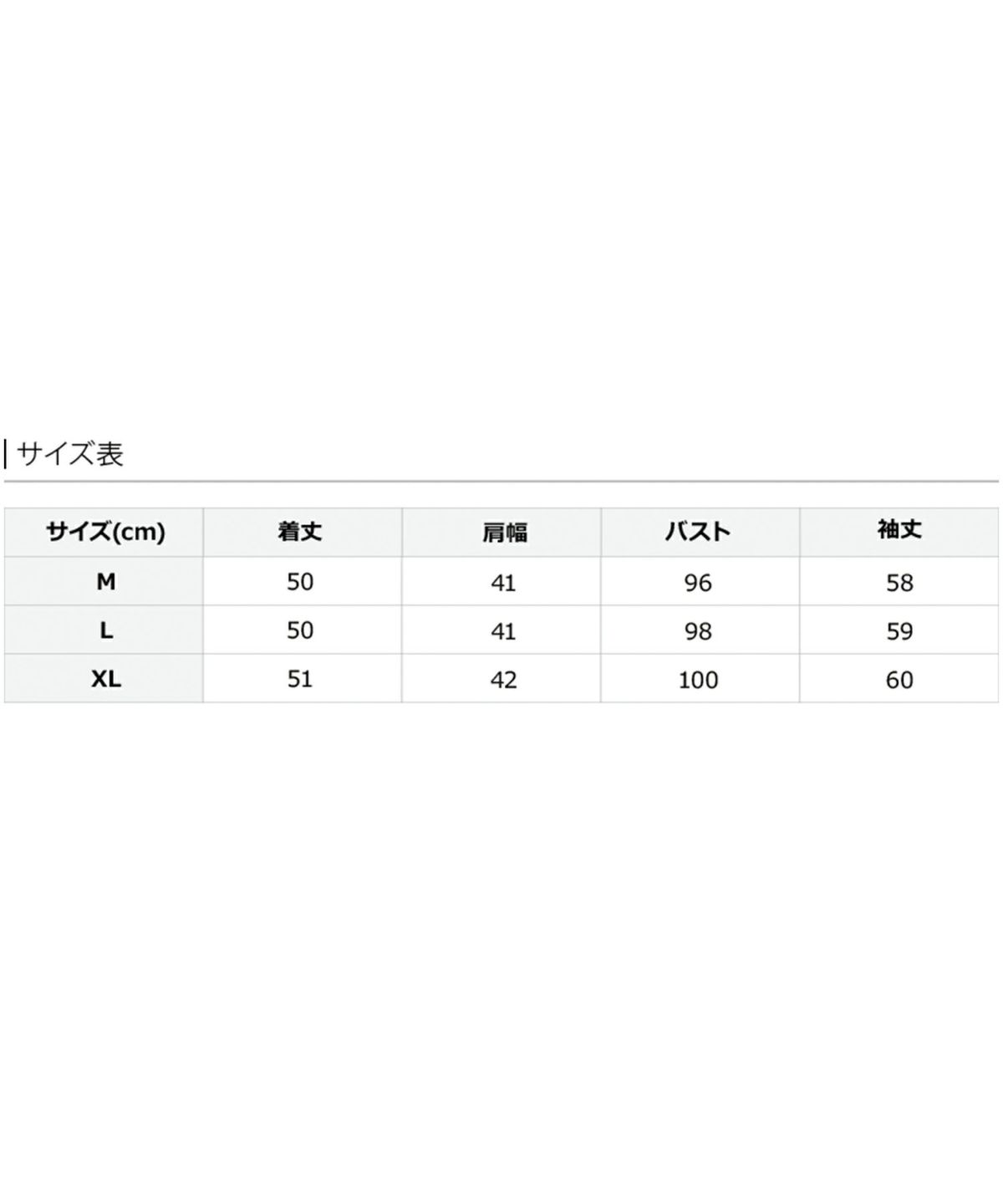 サイズ(cm) 着丈 肩幅 バスト 袖丈