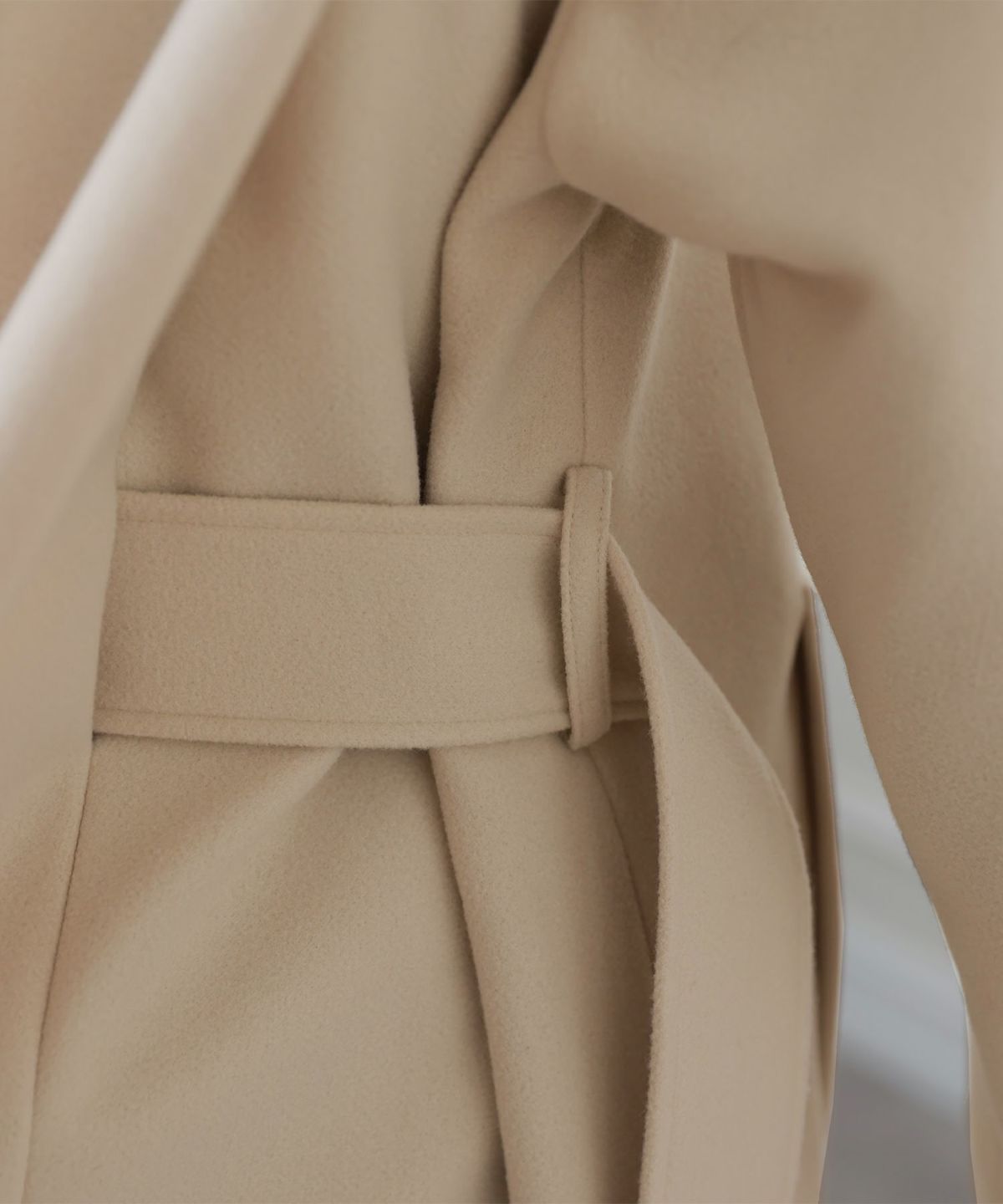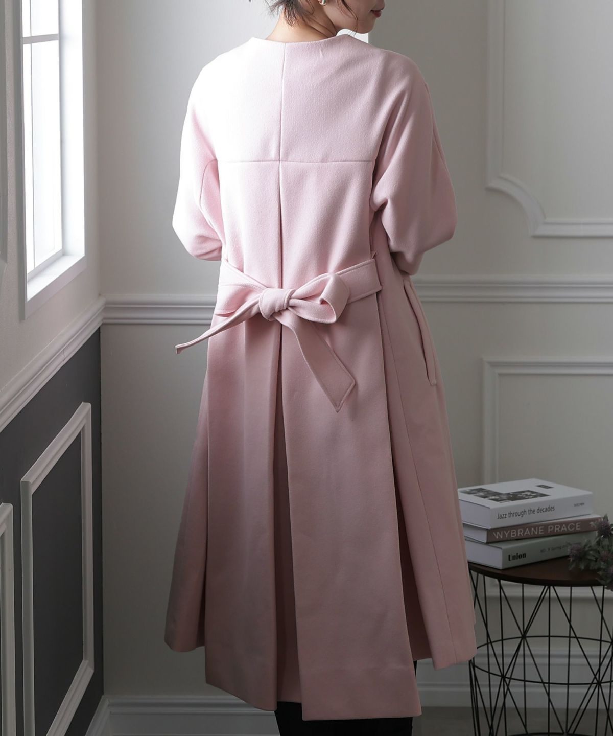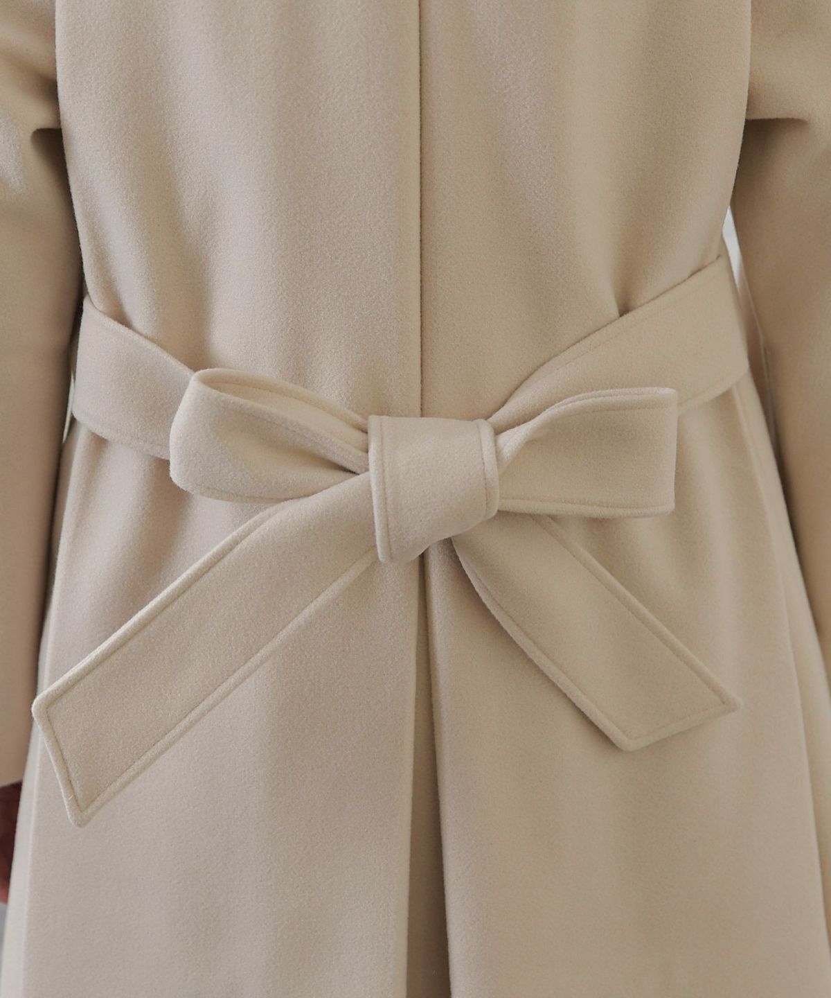 背面のタックとベルトデザインが可愛いコート。裾が広がるAラインのシルエットはスタイルアップ見せも叶える嬉しいアイテム。