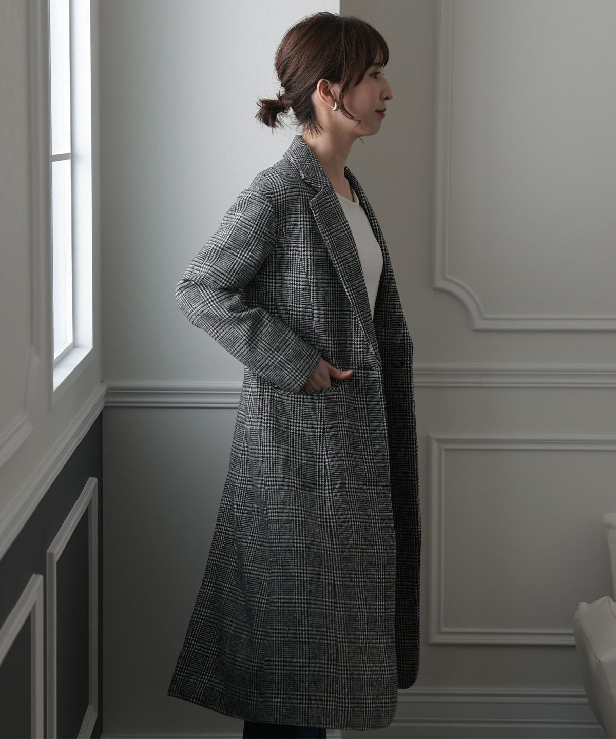マニッシュな魅力のあるチェック柄のロングコート。シンプルなシルエットなのでどんなコーデにも羽織ることができるアイテムです。