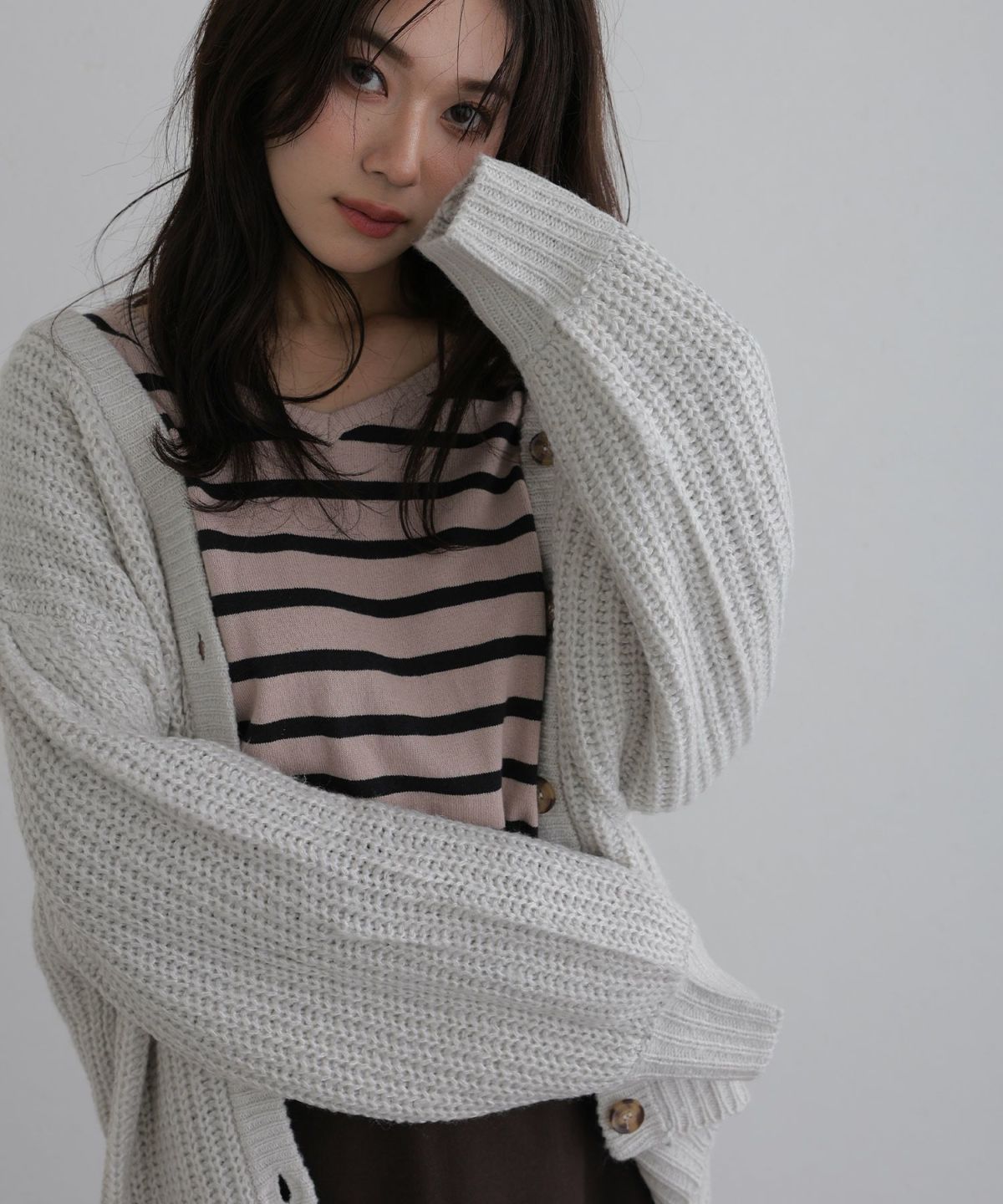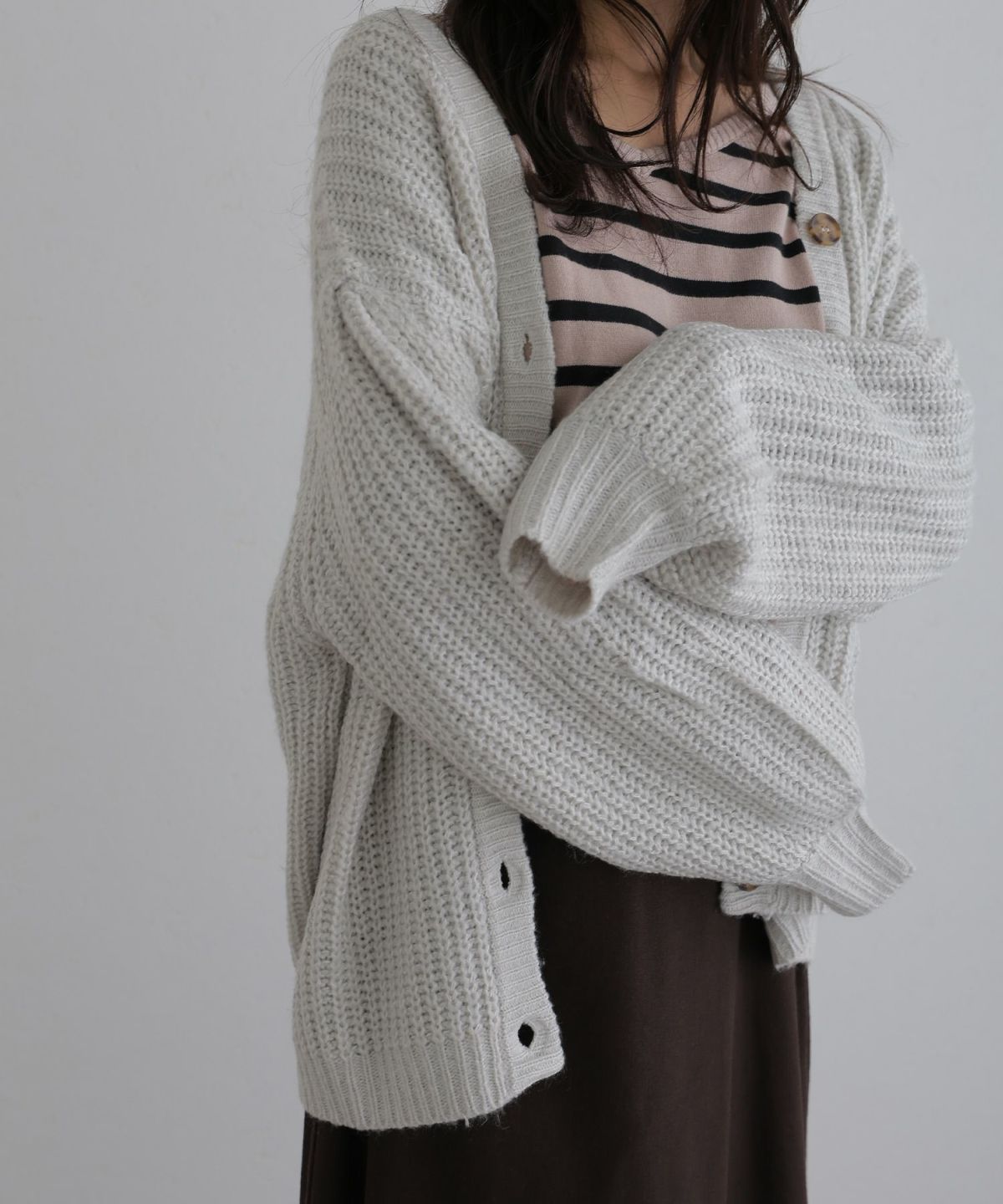 ざっくり編みで大人可愛くいつでも羽織ればお洒落になれる