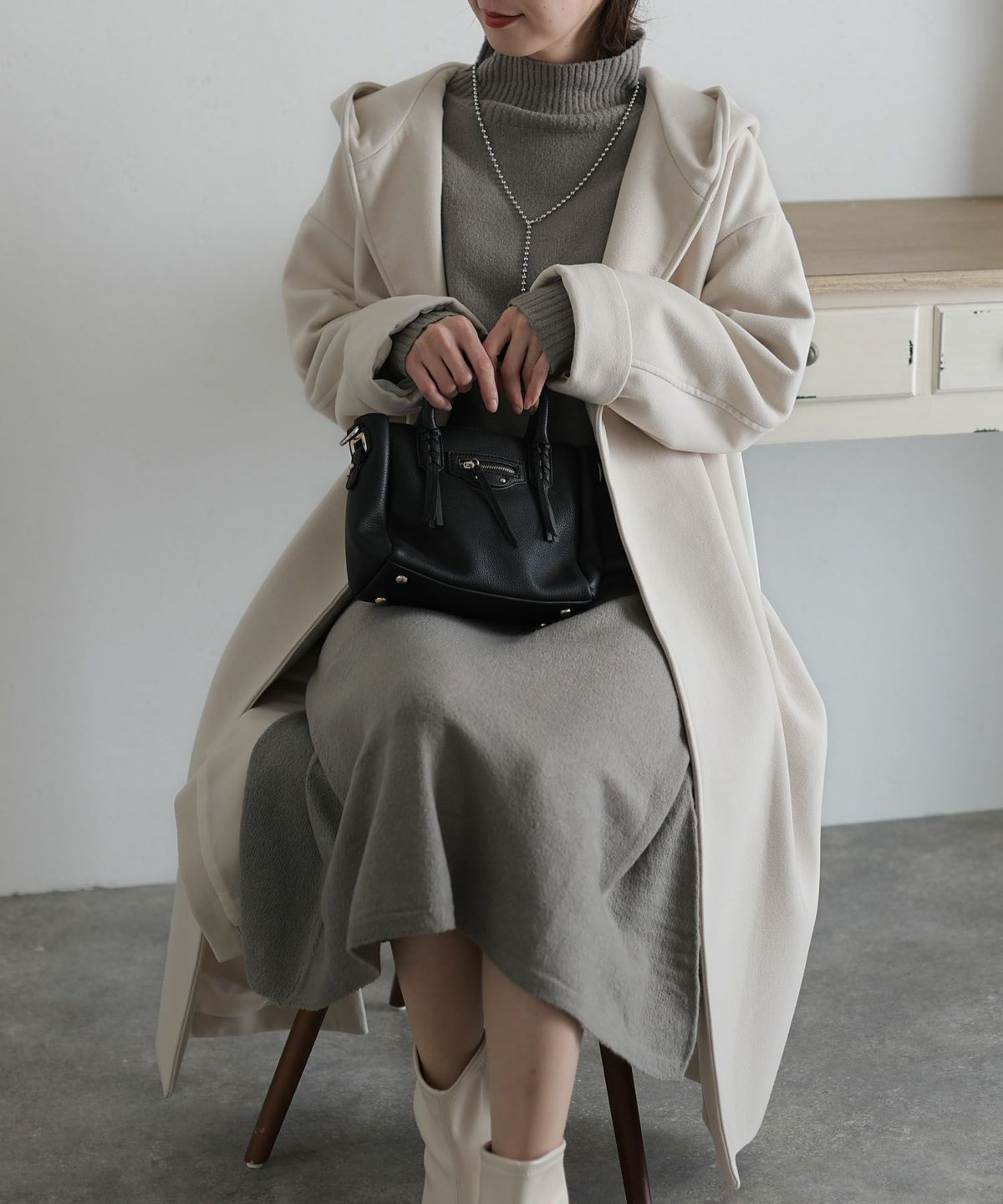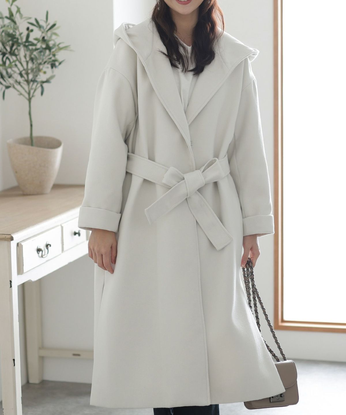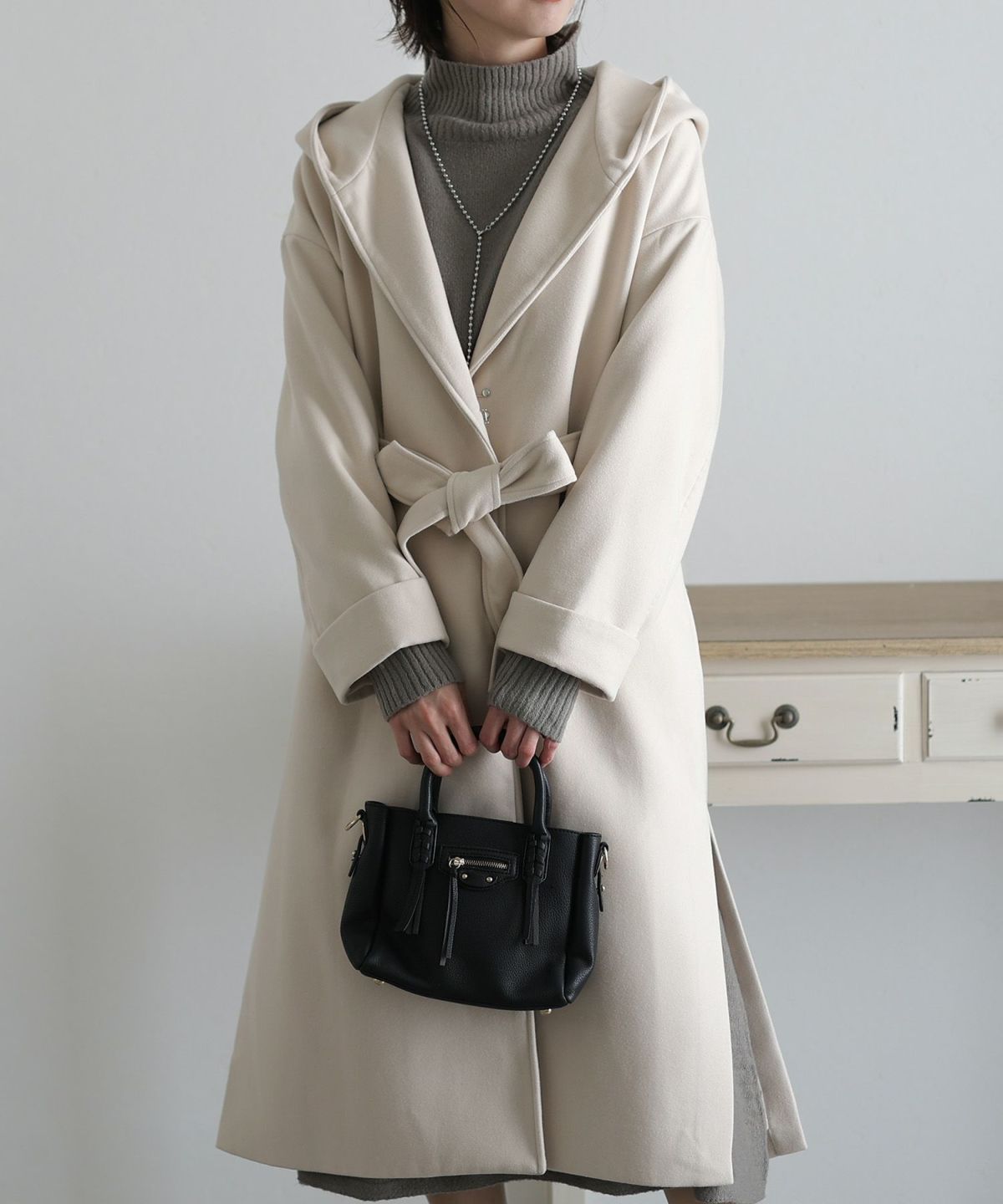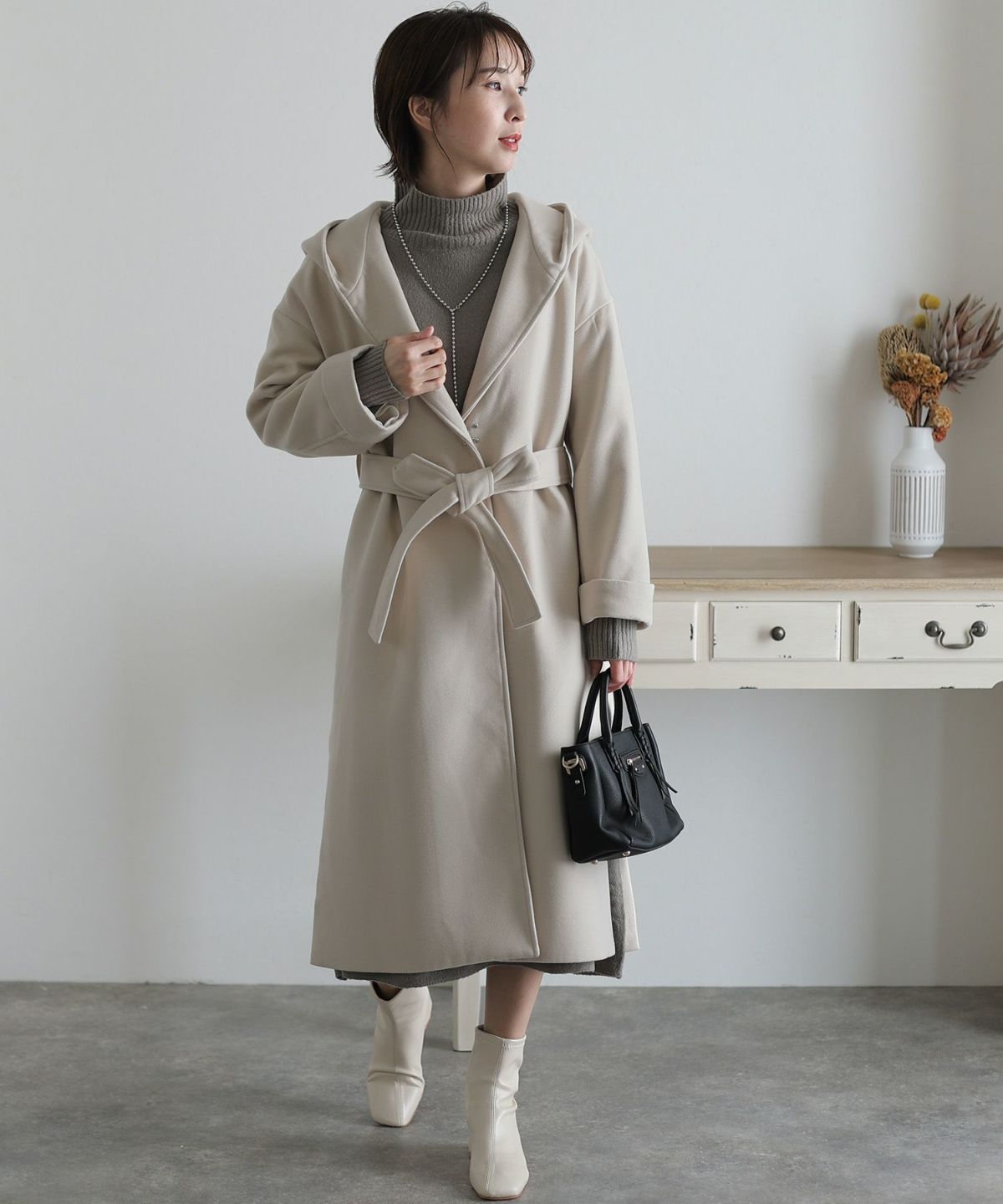 様々な着方が楽しめる上品フーテッドコート フーテッドコート