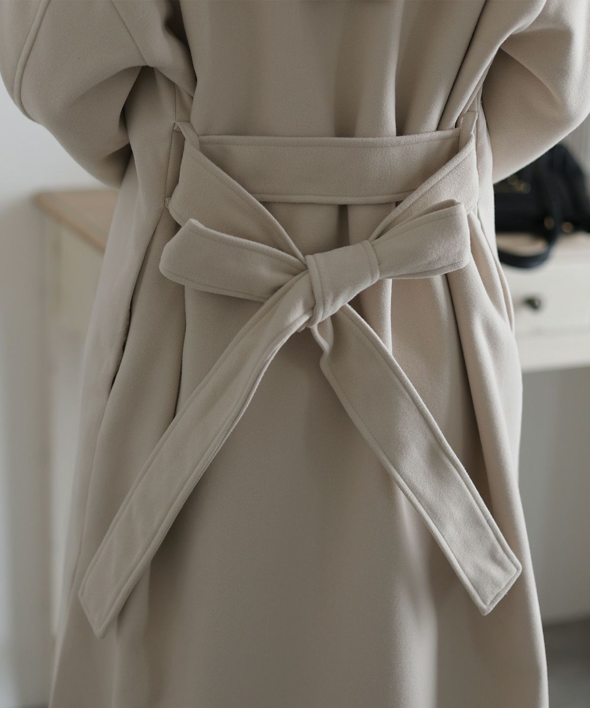 付属のベルトで縛ると、オシャレでエレガントなガウン風の着こなしに。