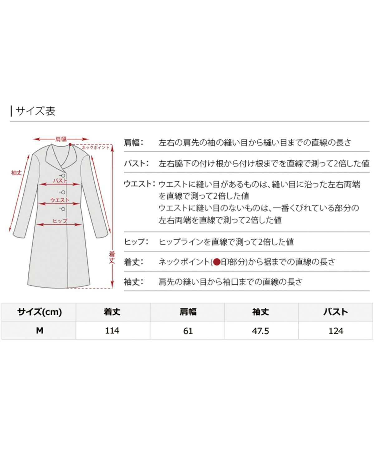 サイズ(cm) 着丈 肩幅 袖丈 バスト