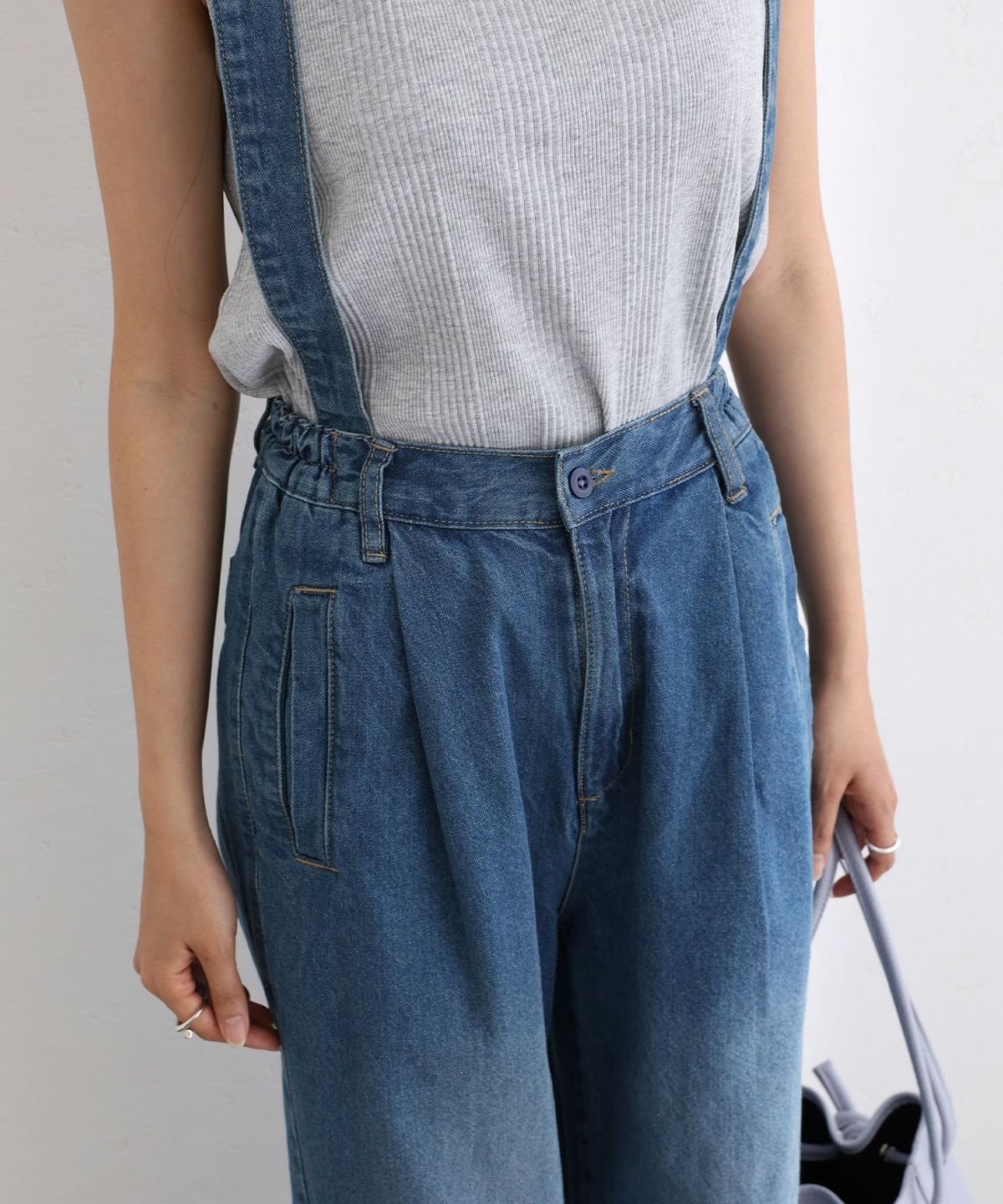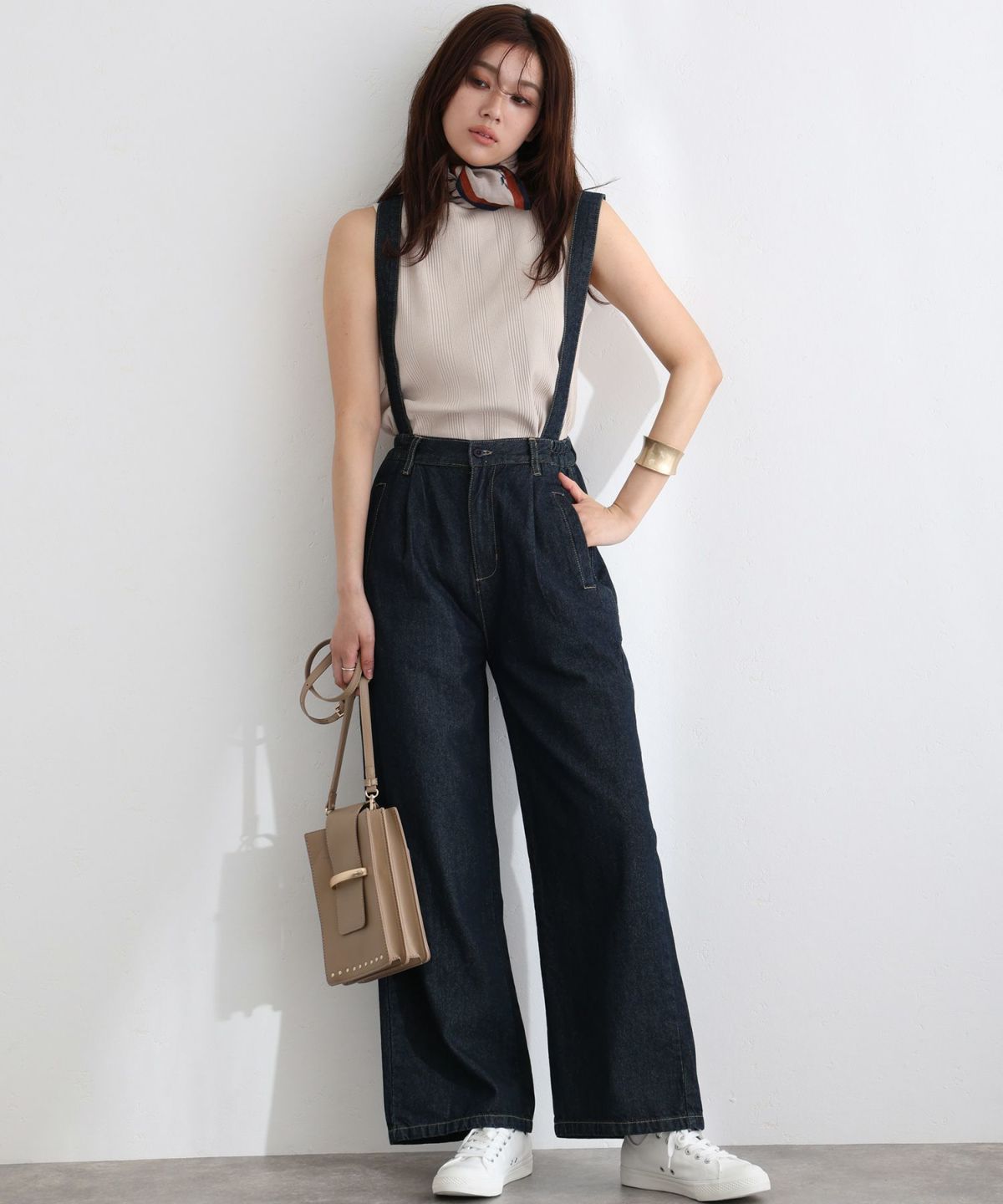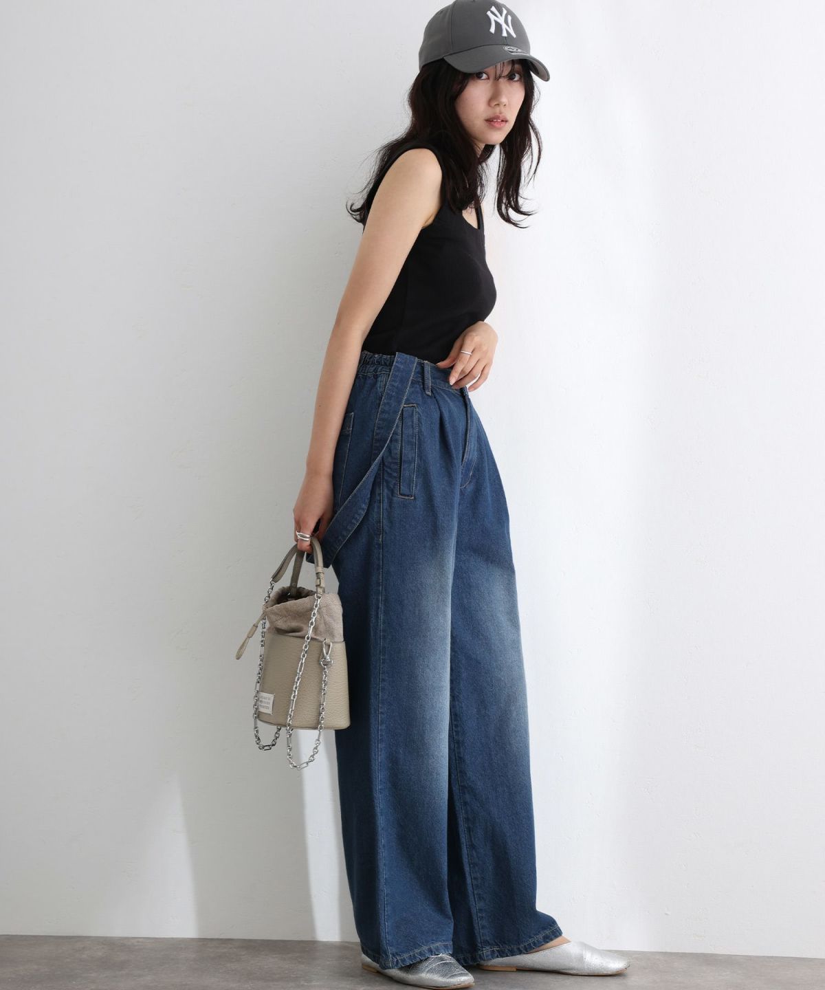 ゆったりとしたシルエット感 取り外し可能サスペンダーデニムワイドパンツ