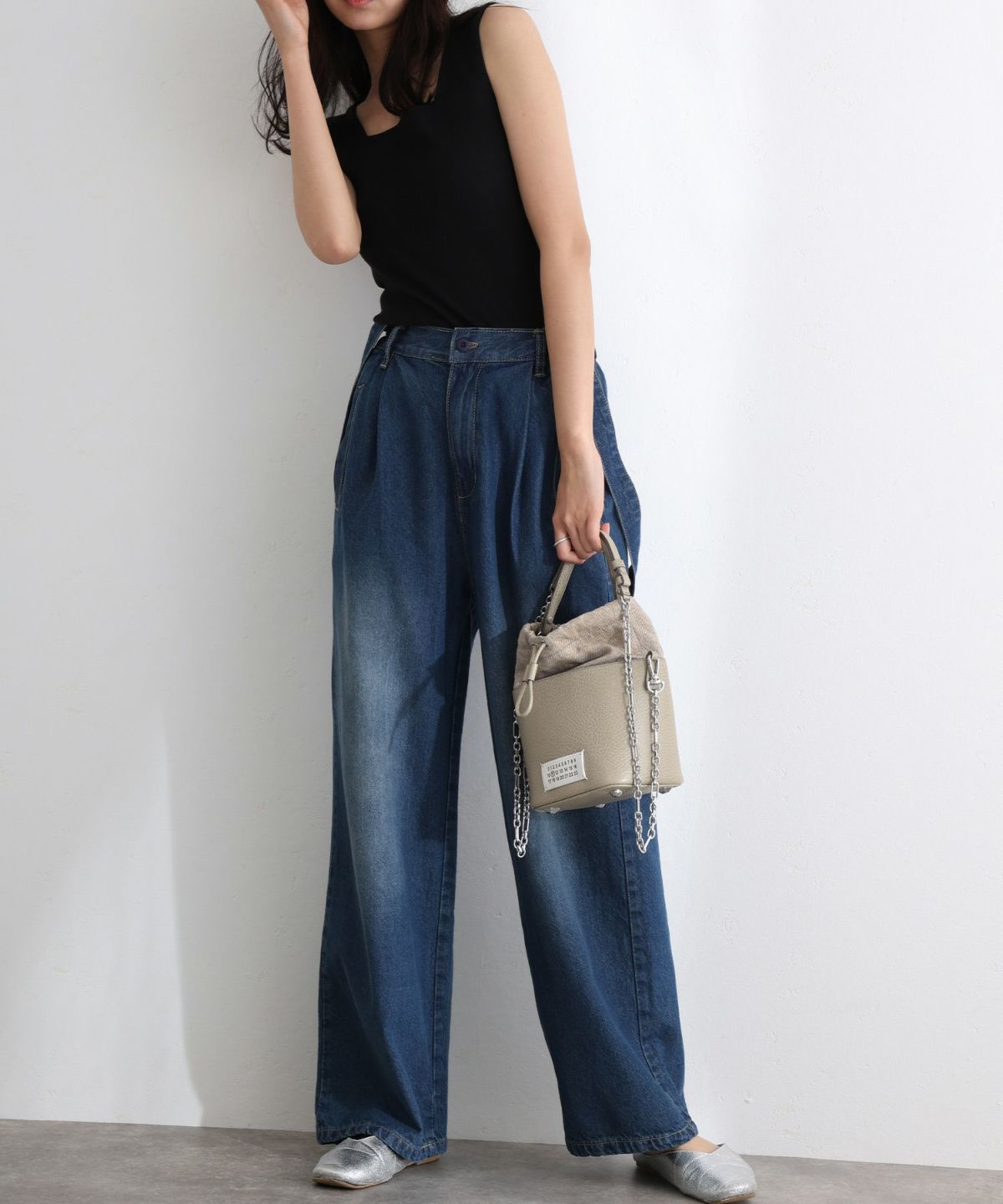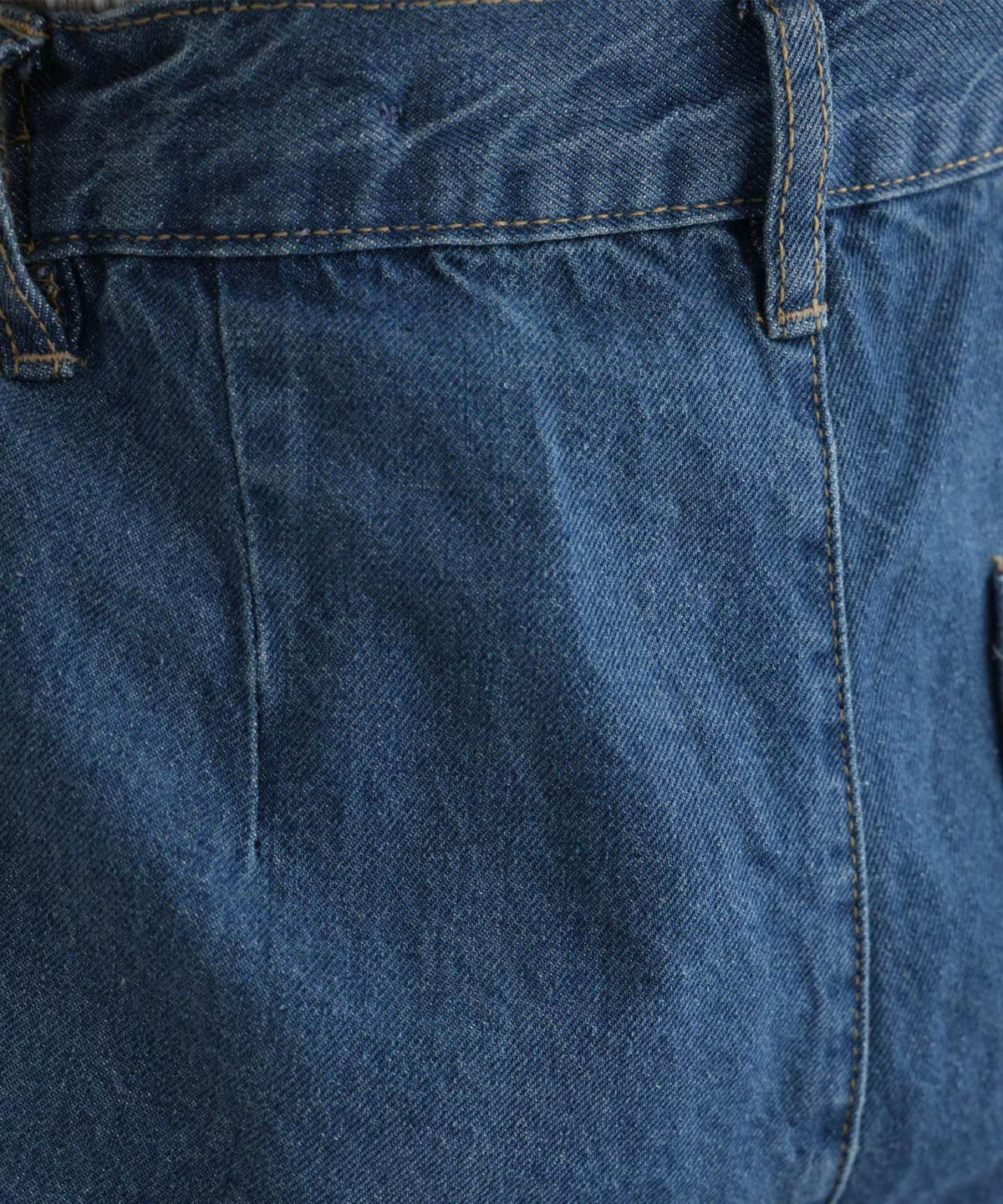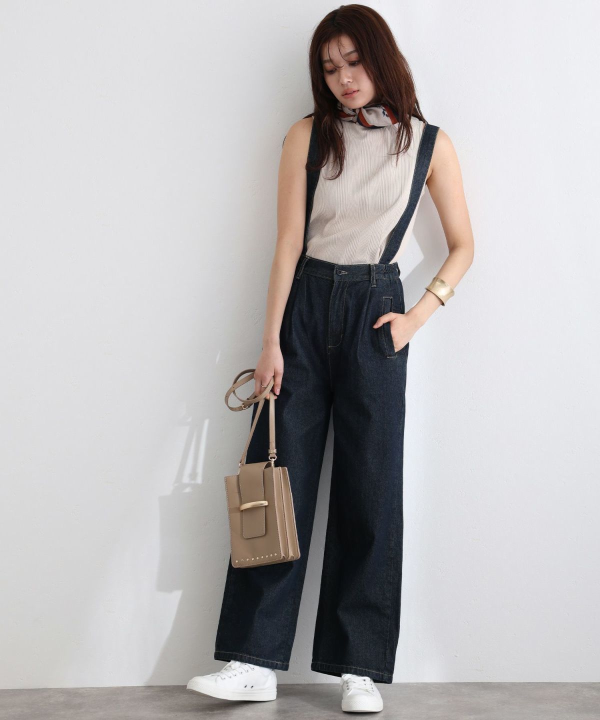 ゆったりとしたシルエット感 取り外し可能サスペンダーデニムワイドパンツ