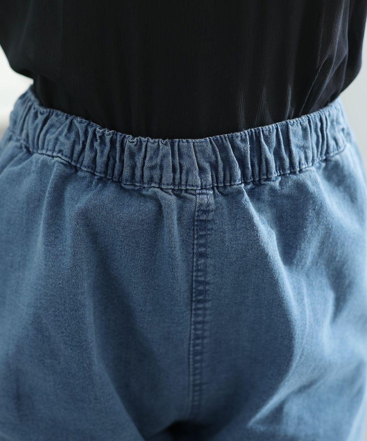 総ゴムのウエストが着心地も楽ちんパンツ ストレッチデニムアンダーパンツ