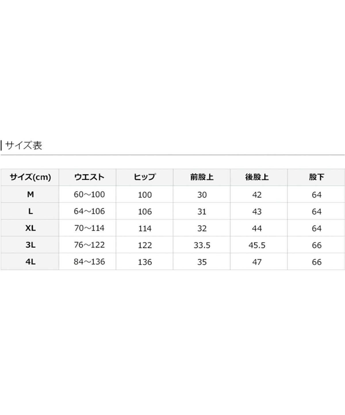 サイズ(cm)ウエストヒップ前股上後股上股下