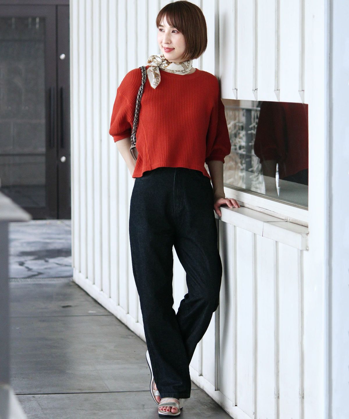 ★足長効果抜群!------------------------------------------------------------レッグラインを拾いすぎないストレートシルエットでスタイル良く魅せてくれます。ハイライズで足長効果もあり、優秀アイテムです♪