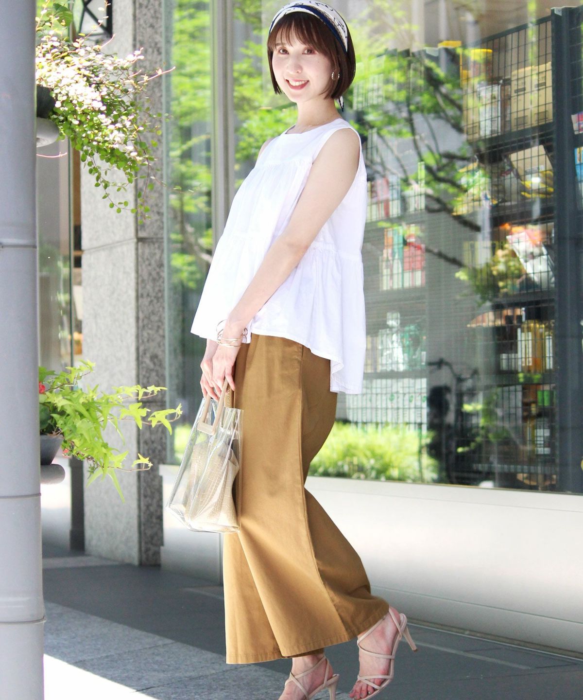 着心地の良い軽やかな生地感で春夏にピッタリのアイテム。こなれ感のあるカジュアルコーデに最適です♪