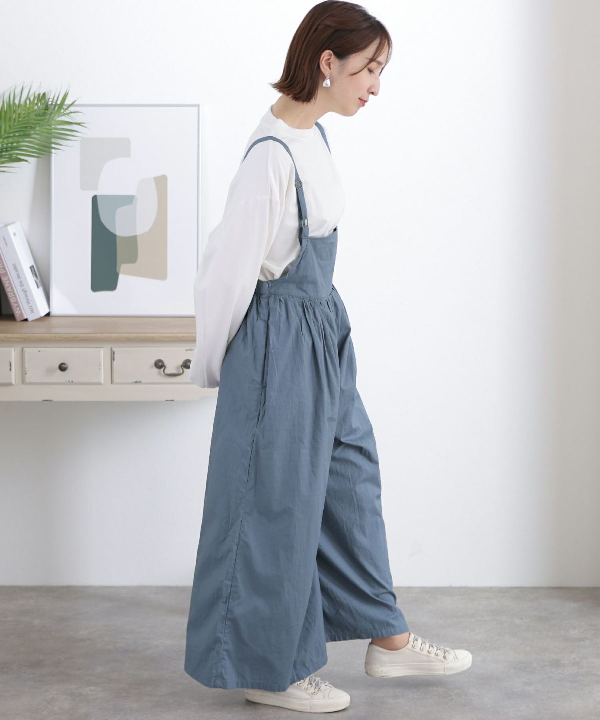 ワイドなサイズ感が可愛い ギャザーサロペットライトパンツ