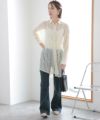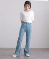 ■柔らかいデニム生地で着心地がいいウエストサイドがゴム仕様で楽ちん。裾広がりのフレアシルエットで美脚効果も◎