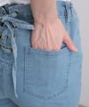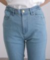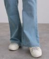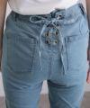 バックレースアップデザインで後ろ姿まで可愛い 後編み上げリボン付きブーツカットデニムパンツ
