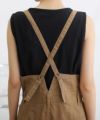 トレンドのワイドシルエットがおしゃれ サスペンダー付きハイウエストツイルパンツ