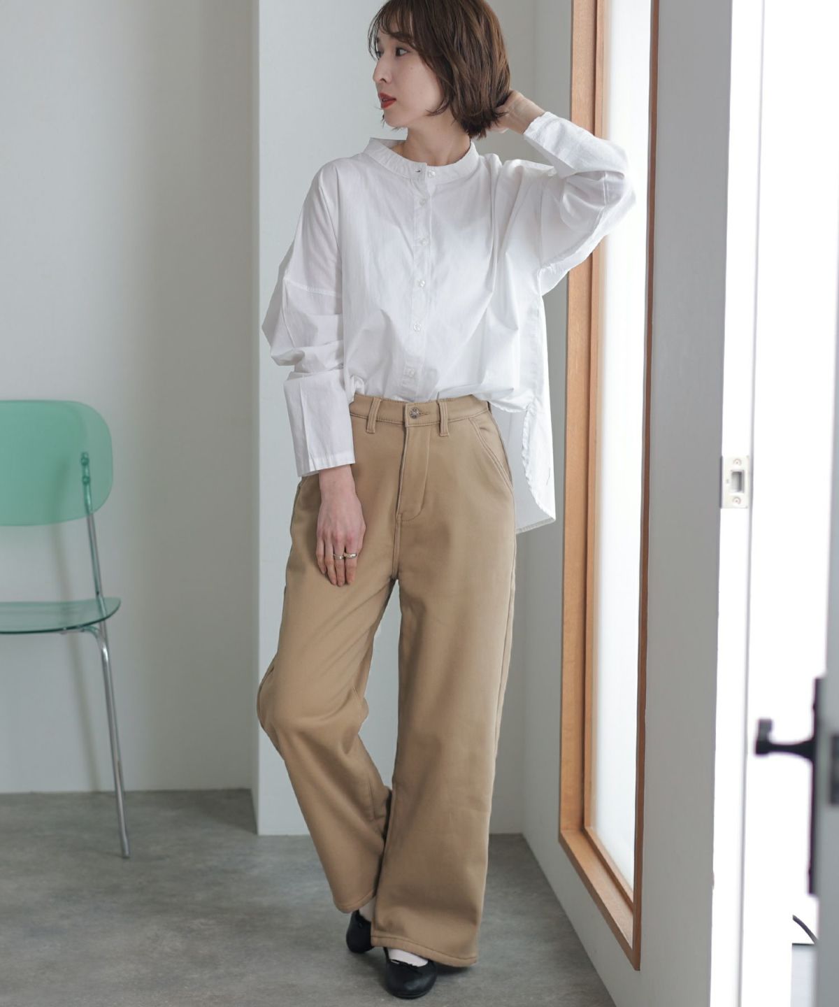 裏フリースツイルワイドストレートパンツ