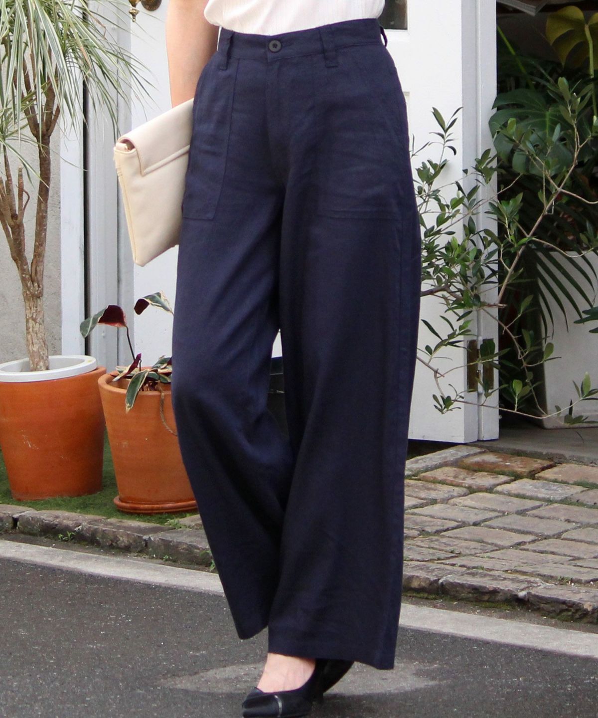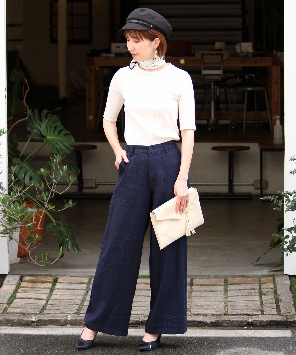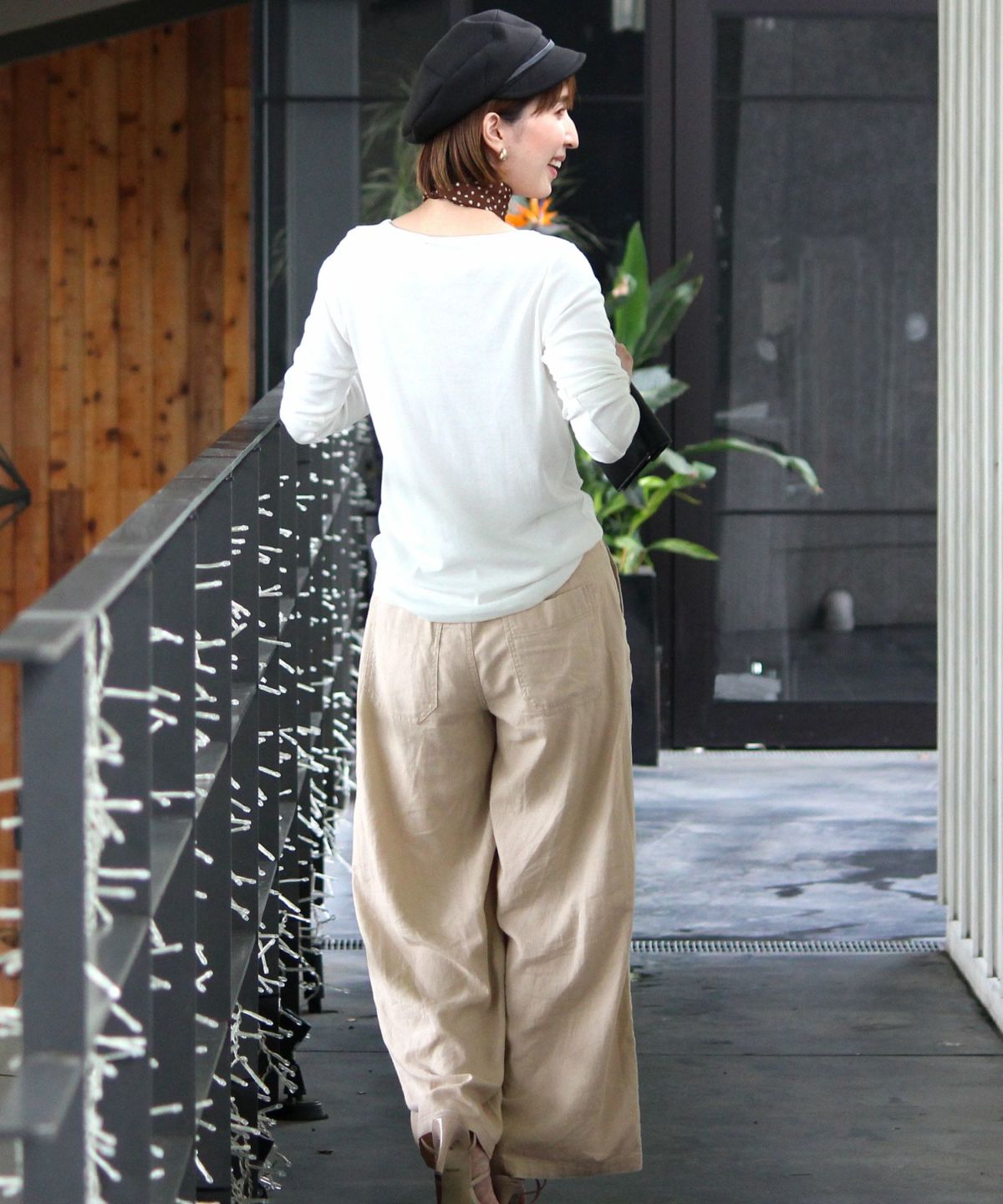 涼しい素材の脚長パンツ リネンワイドベイカーパンツ
