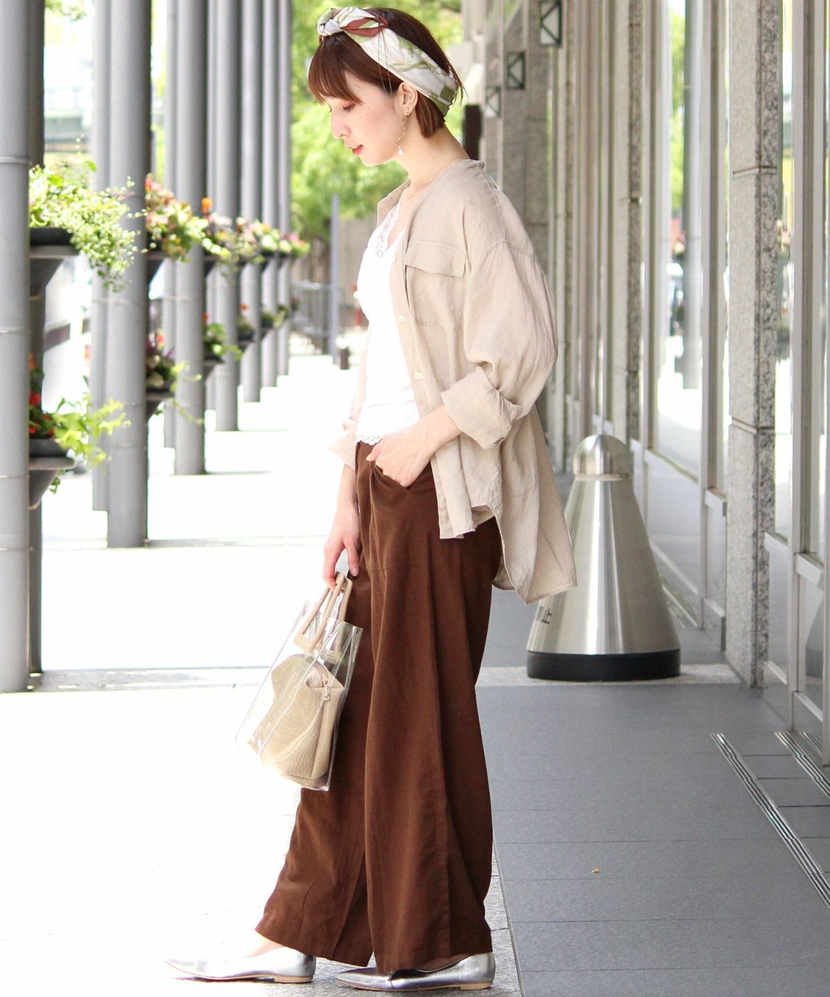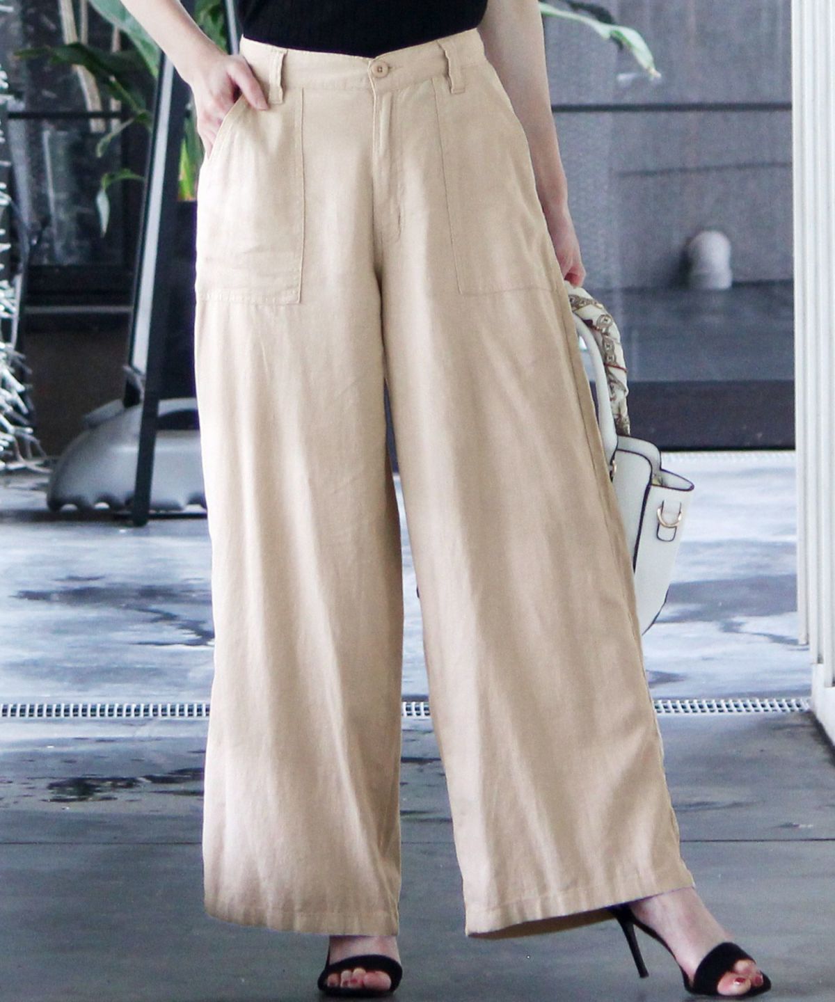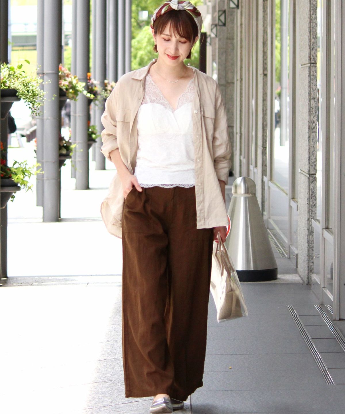涼しい素材の脚長パンツ リネンワイドベイカーパンツ