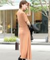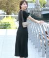ウエスト位置が高めなので脚長効果もあり、マキシ丈なので足元まで綺麗にカバーします。