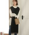 長袖シャツや半袖Tシャツなど、様々なインナーと合わせられるニット。配色デザインが可愛く、コーデに組み込むだけでこなれた印象を高めます。