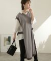 前後どちらでも着られるので、丸首・Vネックの2パターンが楽しめます。インナーに合わせて2WAYで着回すものおすすめのアイテム。