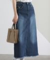 コットン100%使用のデニムロングスカート デニムフリンジロングスカート