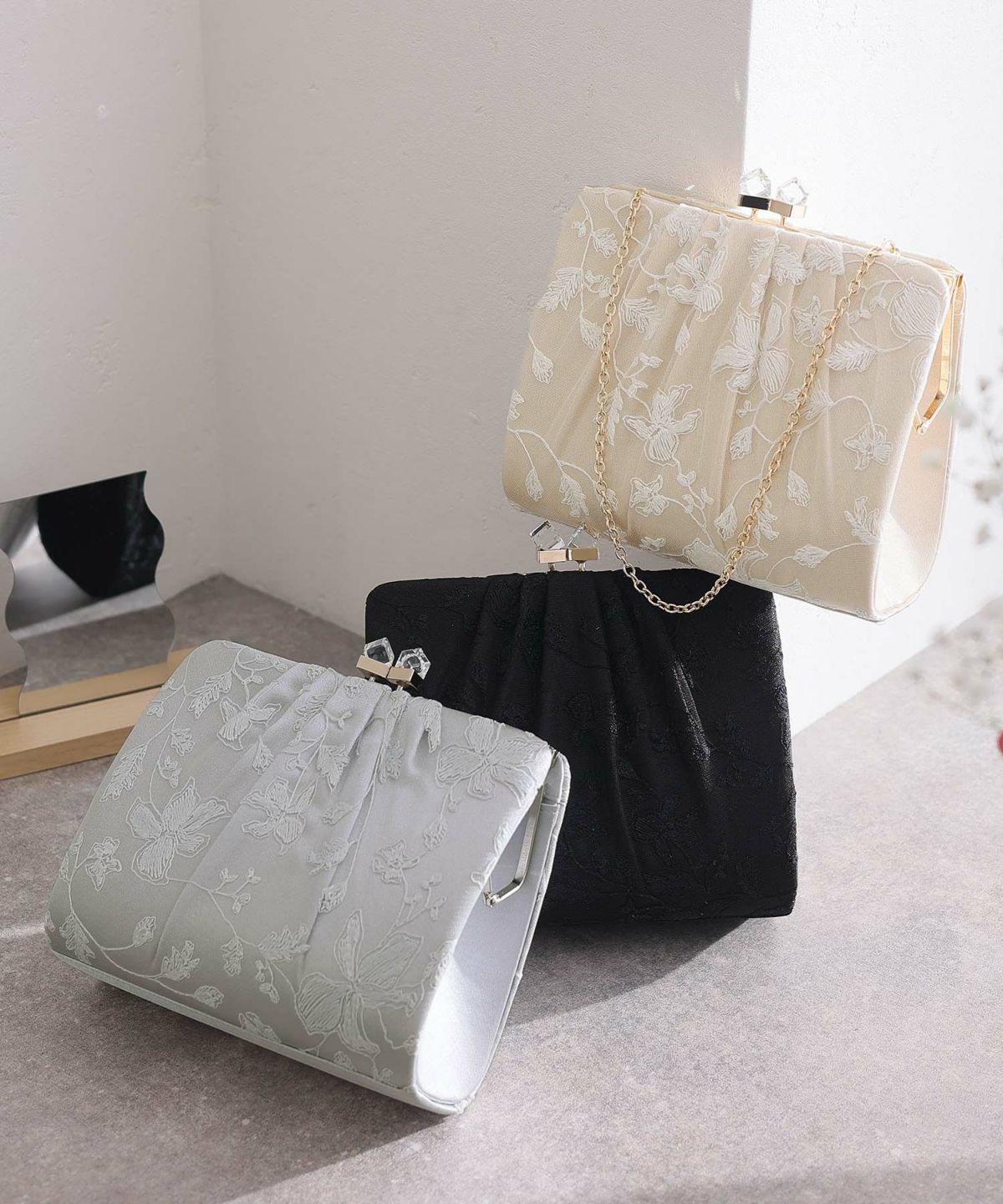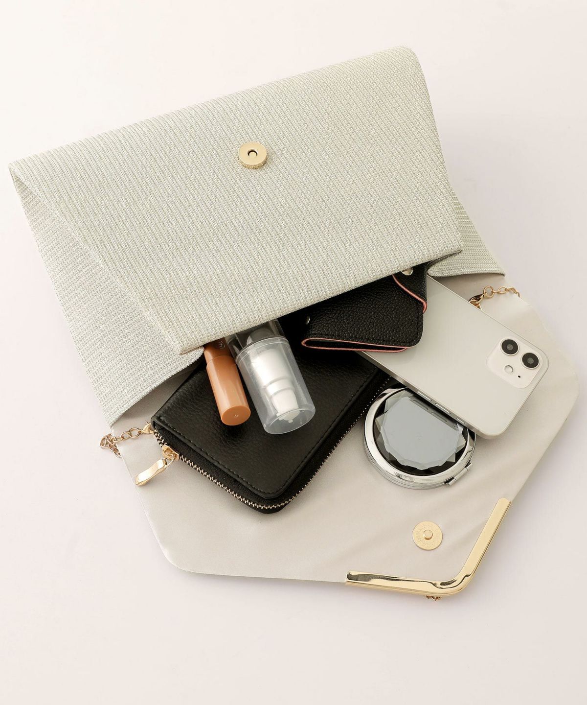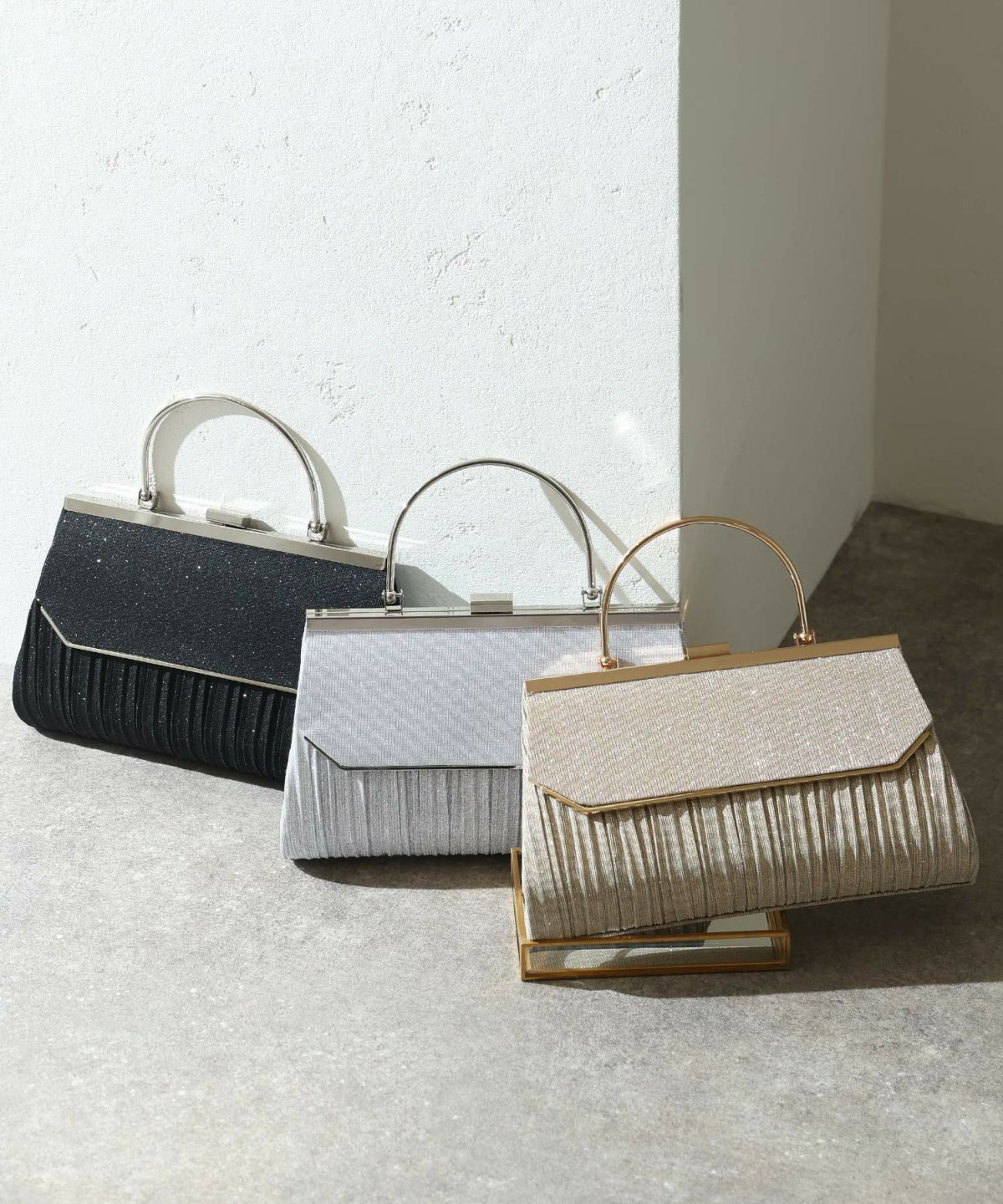 コンパクトなクラッチバッグやミニショルダーバッグで、必要なアイテムをスマートに持ち運び。パーティーにふさわしい華やかなデザインや素材のバッグで、コーディネートを引き締めます。