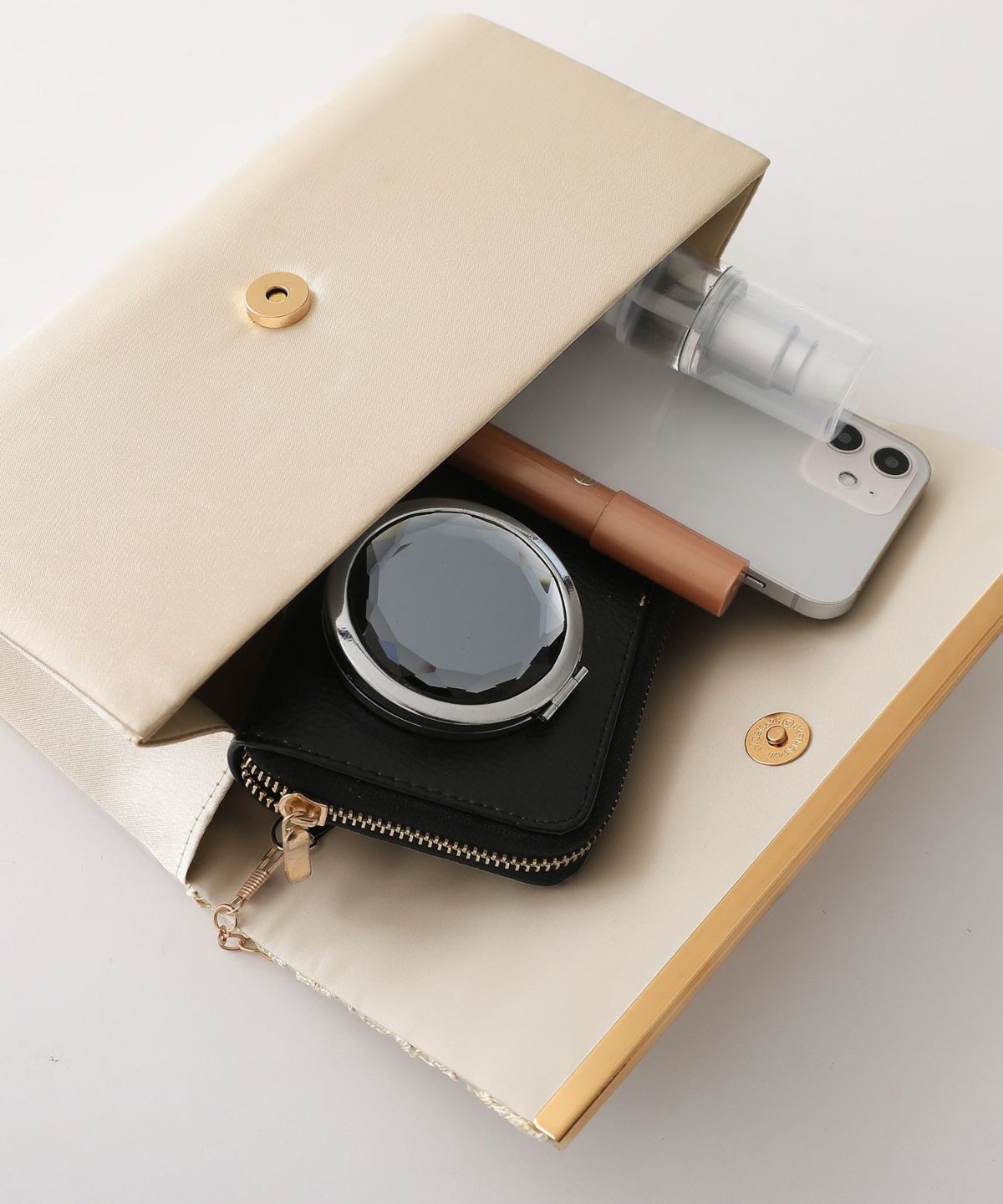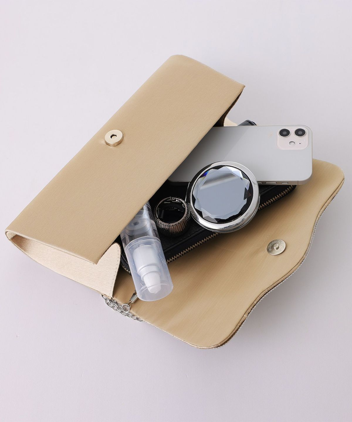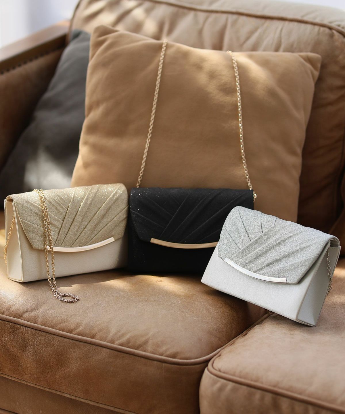 コンパクトなクラッチバッグやミニショルダーバッグで、必要なアイテムをスマートに持ち運び。パーティーにふさわしい華やかなデザインや素材のバッグで、コーディネートを引き締めます。