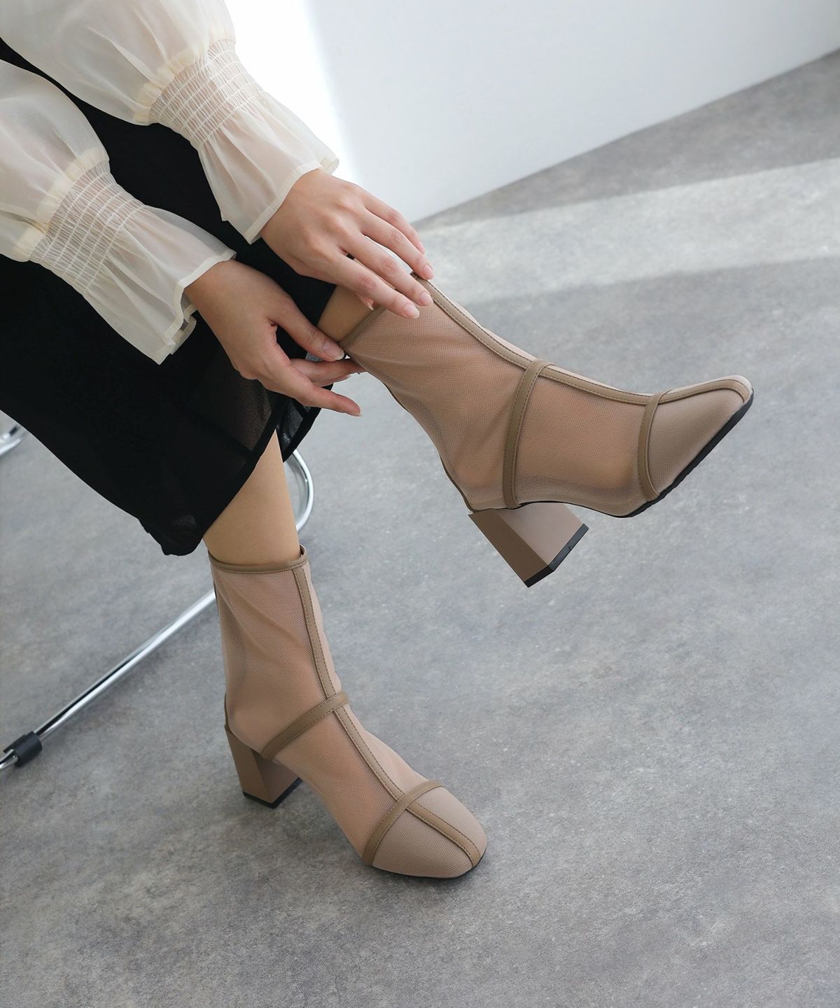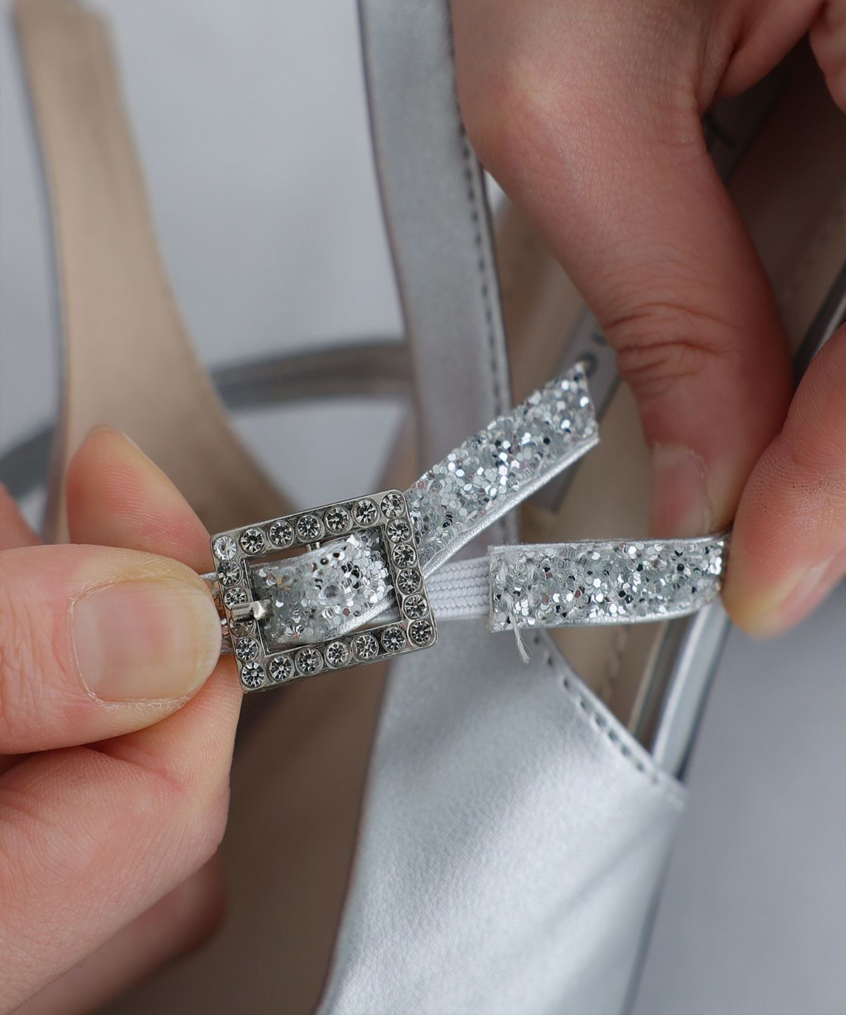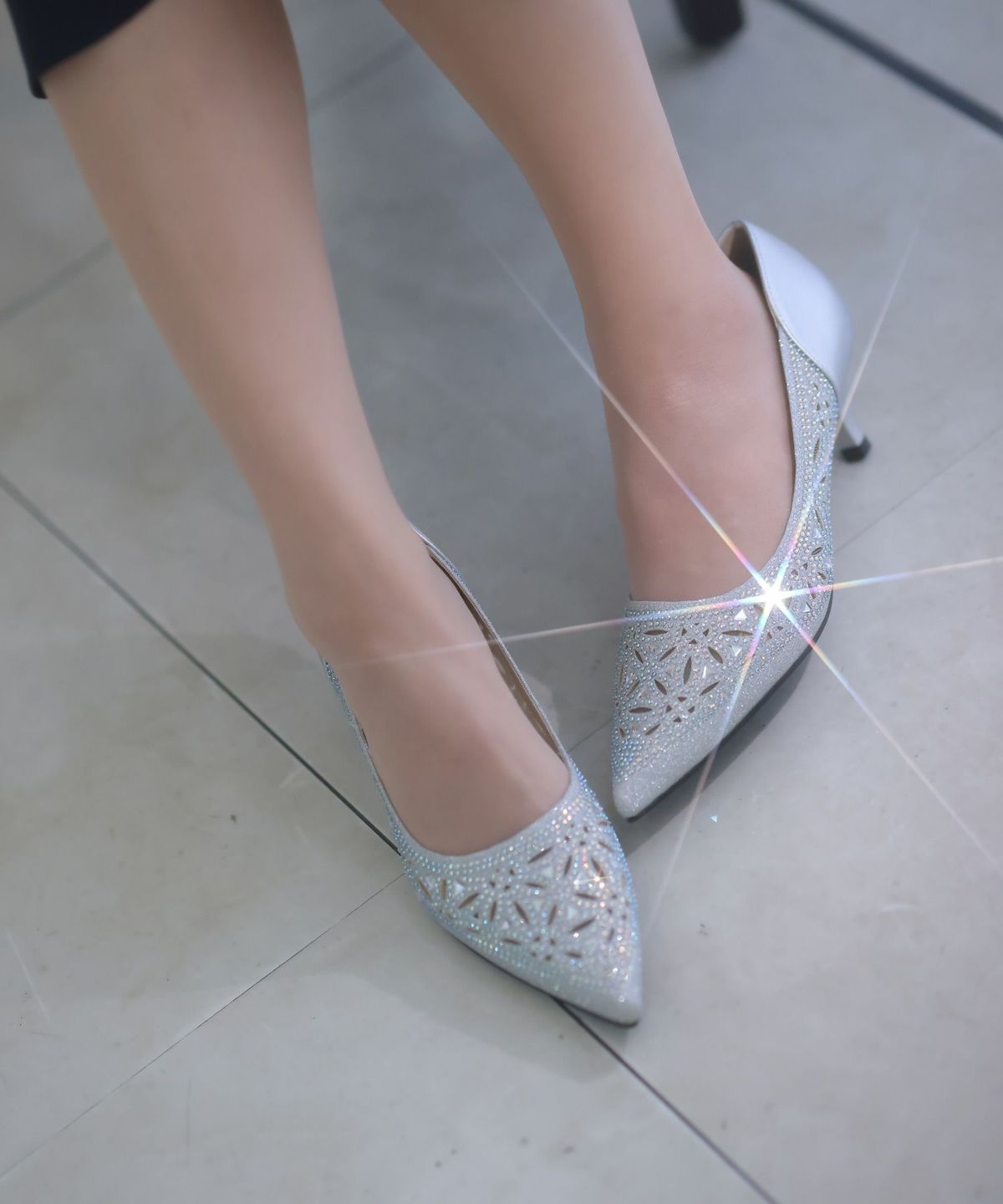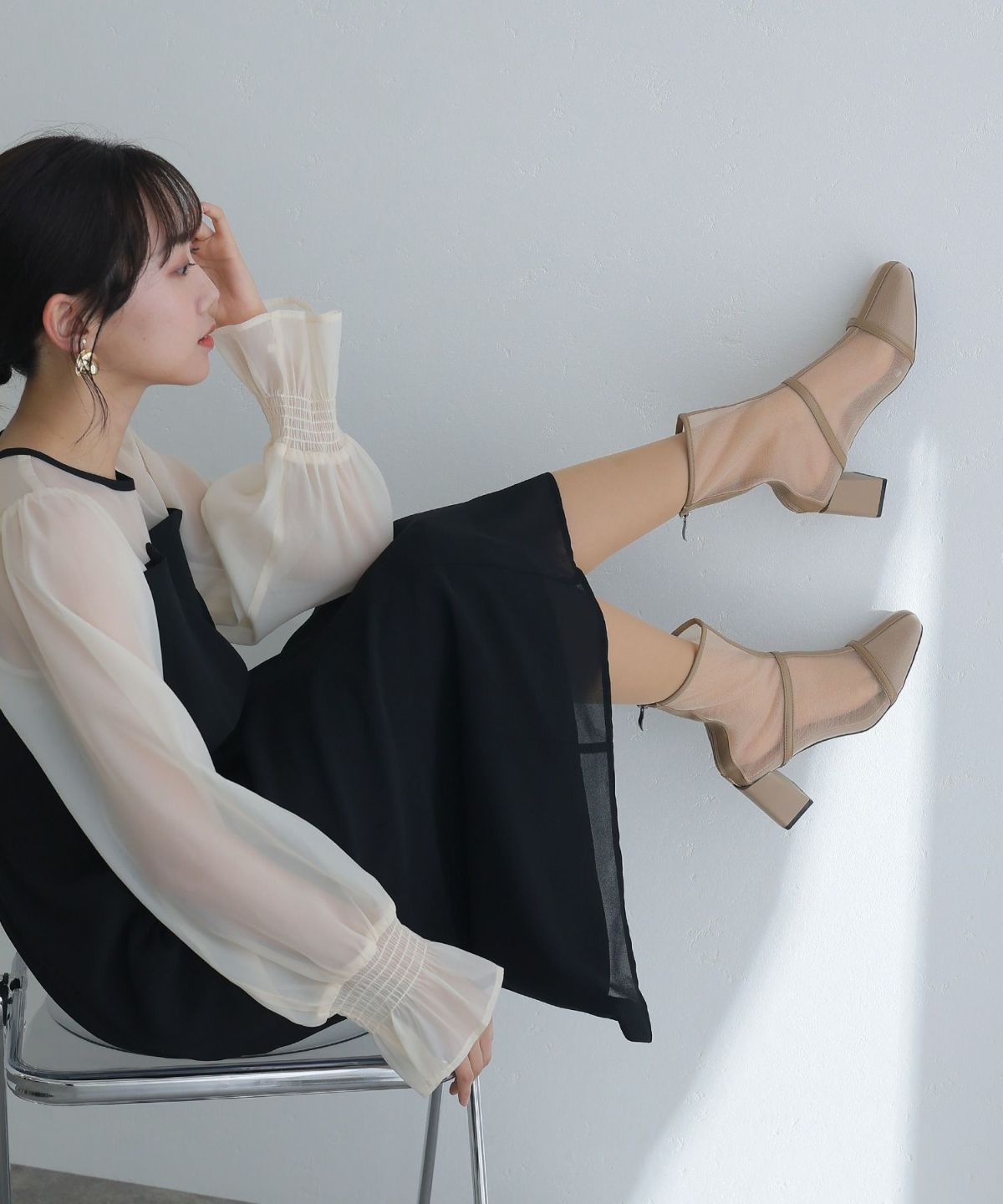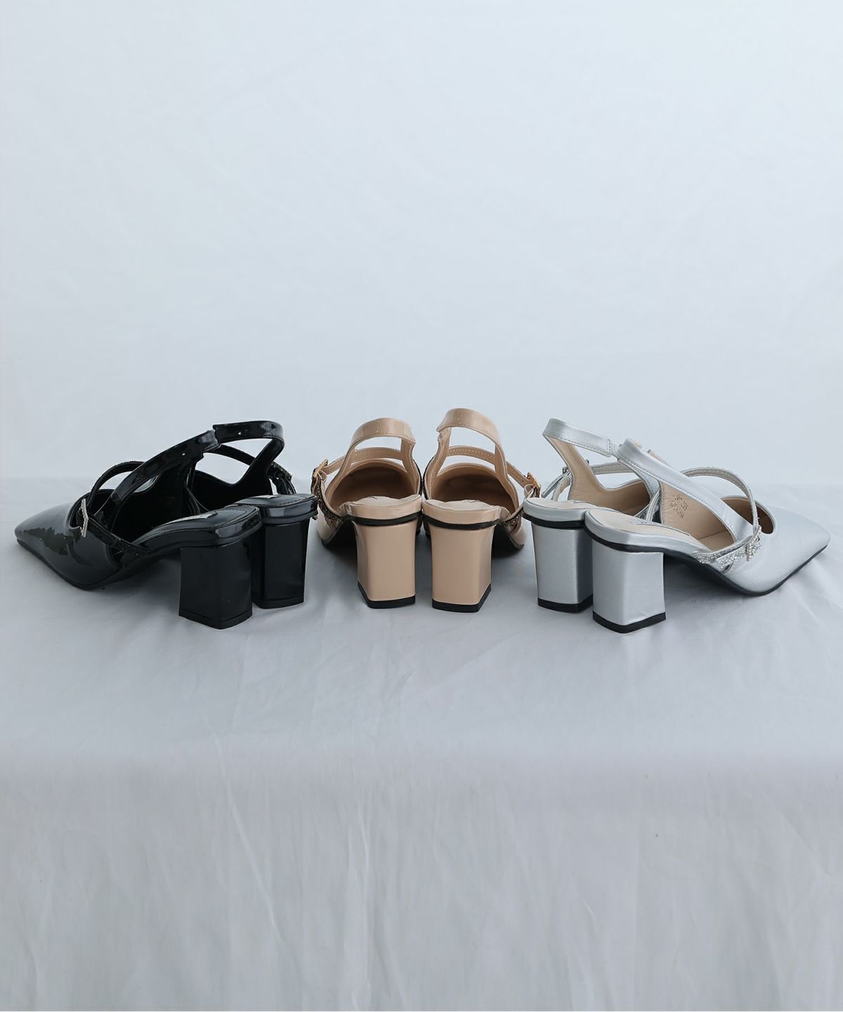 パーティードレスにぴったりのシューズで足元を美しく。ヒールの高さやデザインを選び、ドレスとのバランスを整えます。特に、同系色のパンプスやサンダルは、足を長く見せ、エレガントな印象を与えます。