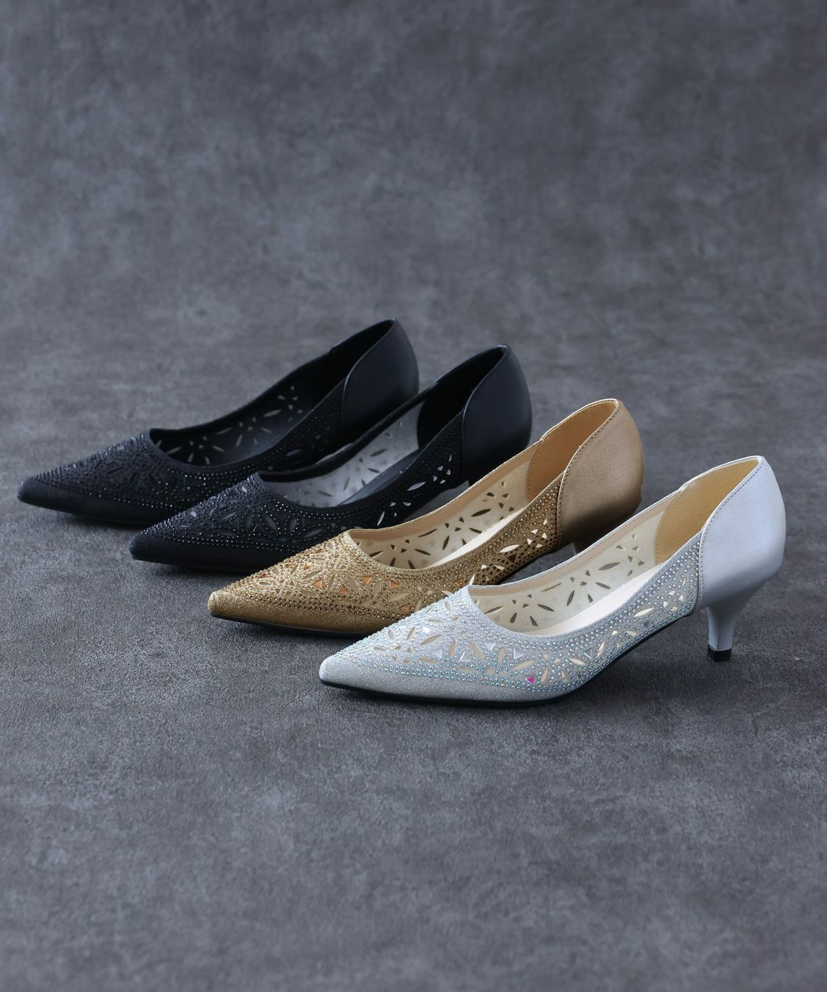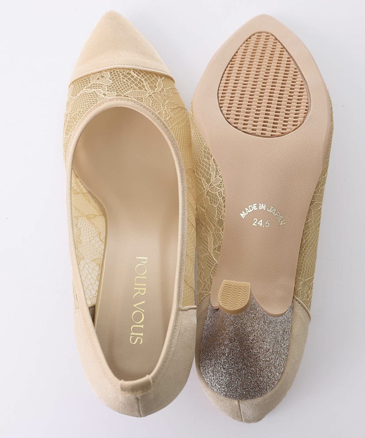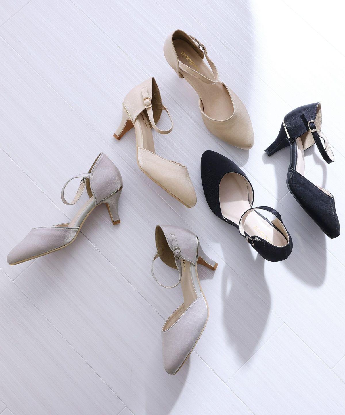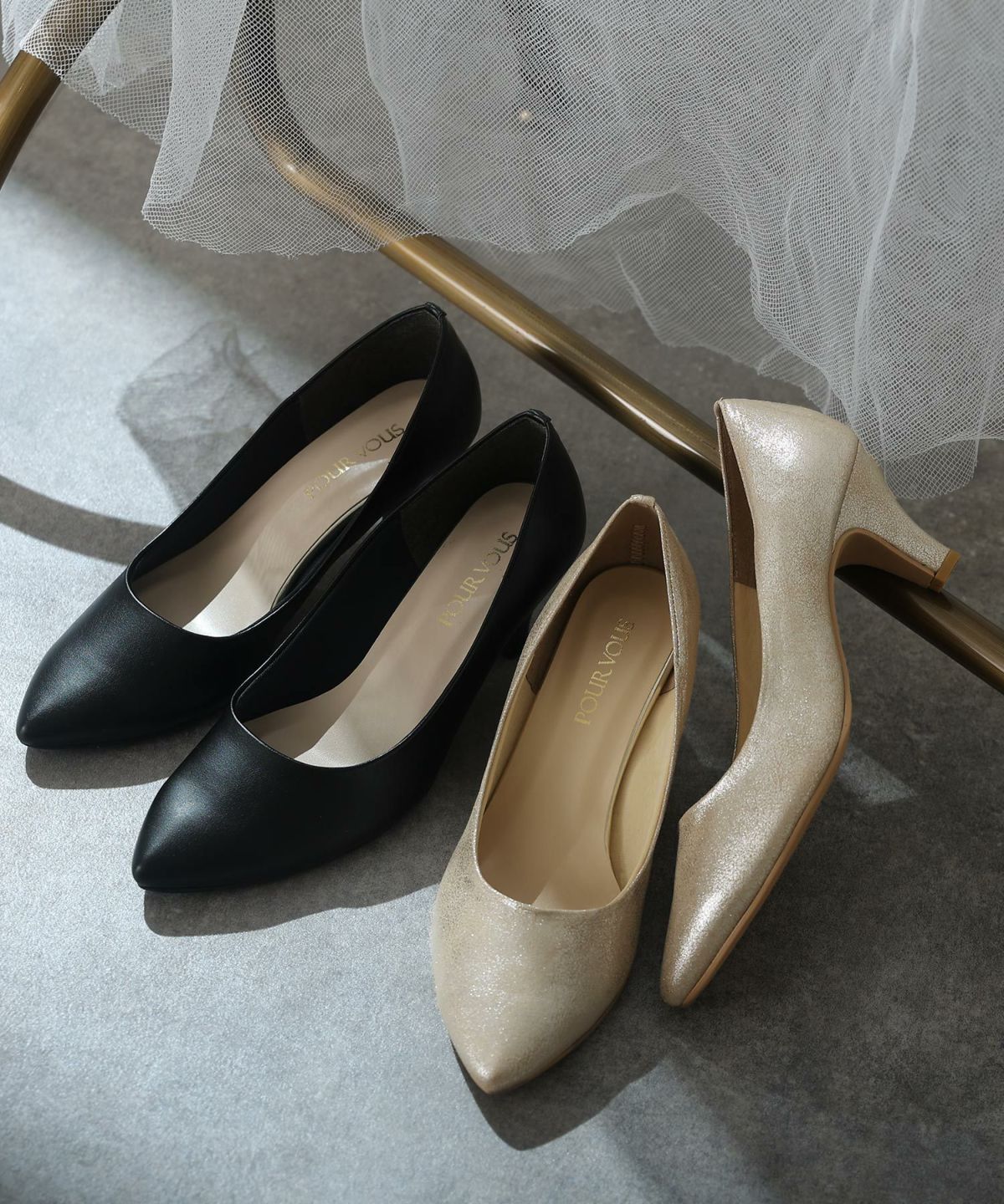 PourVousでは、定番のパンプスはもちろん、結婚式・二次会向けの華やかデザインまで多彩。