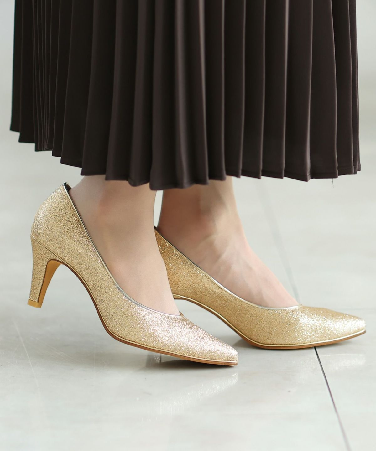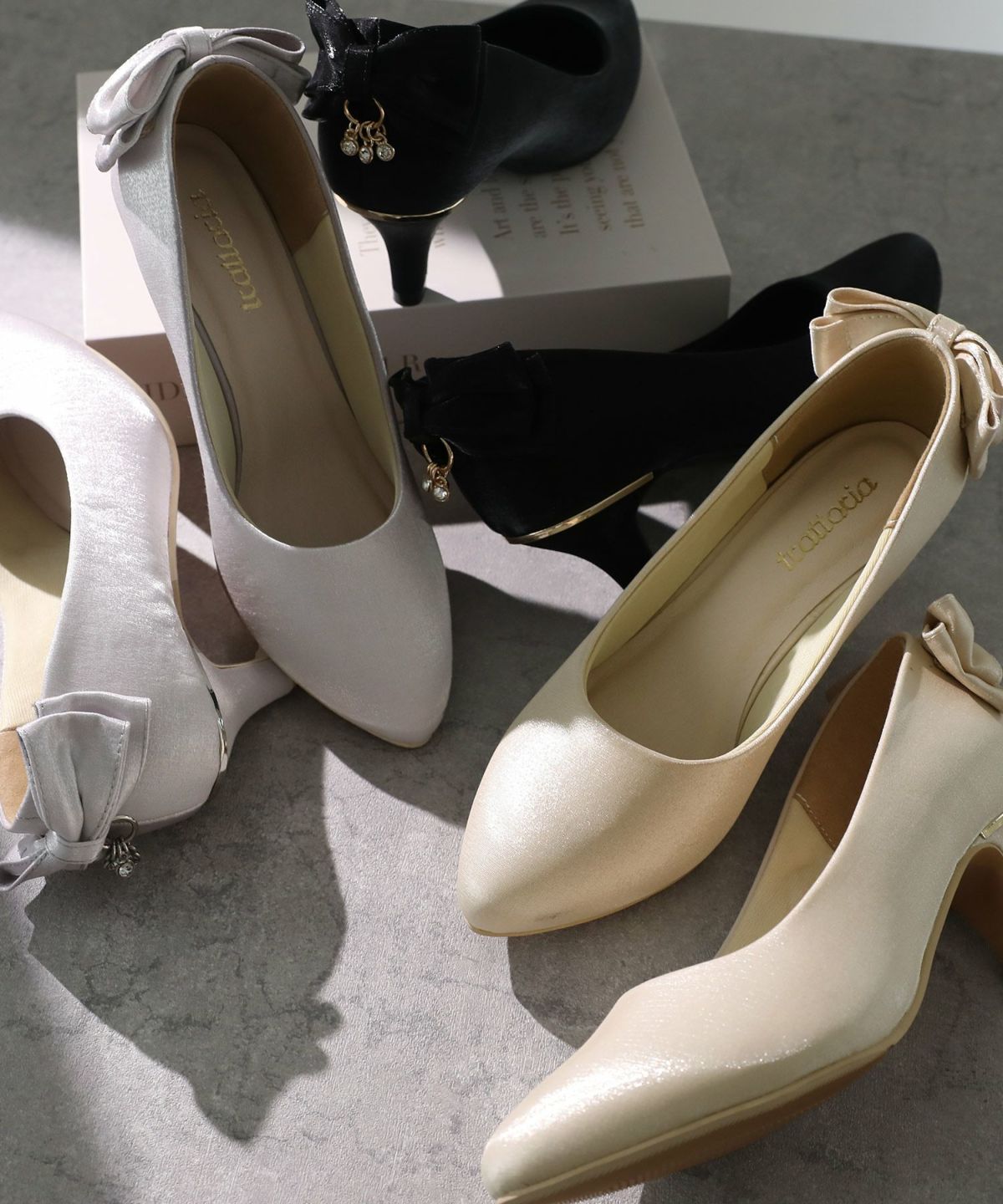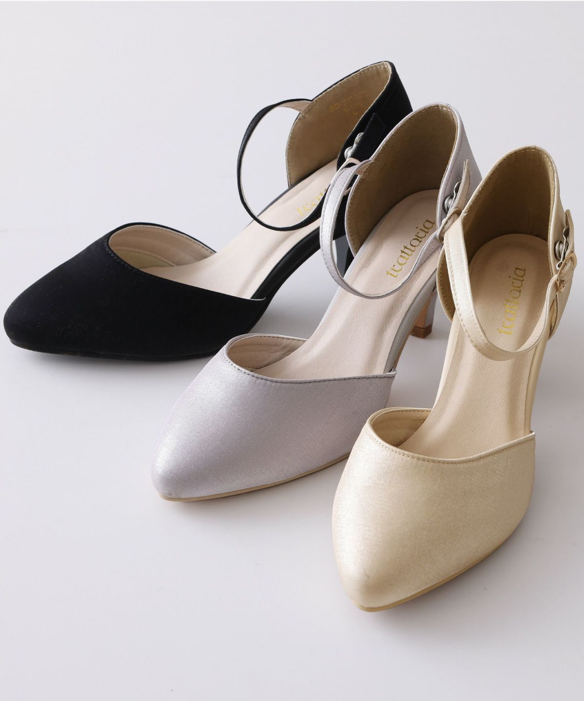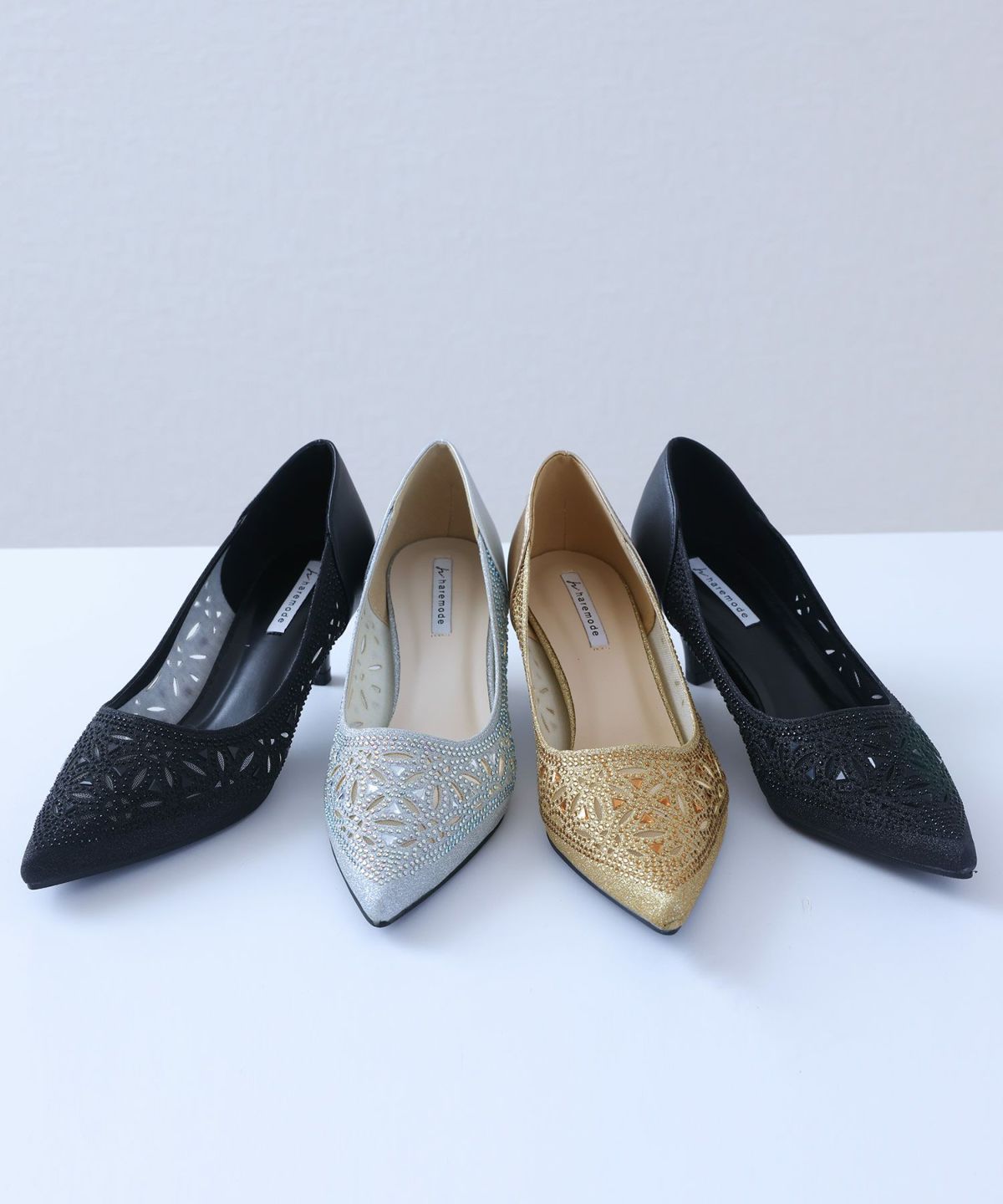 PourVousでは、定番のパンプスはもちろん、結婚式・二次会向けの華やかデザインまで多彩。